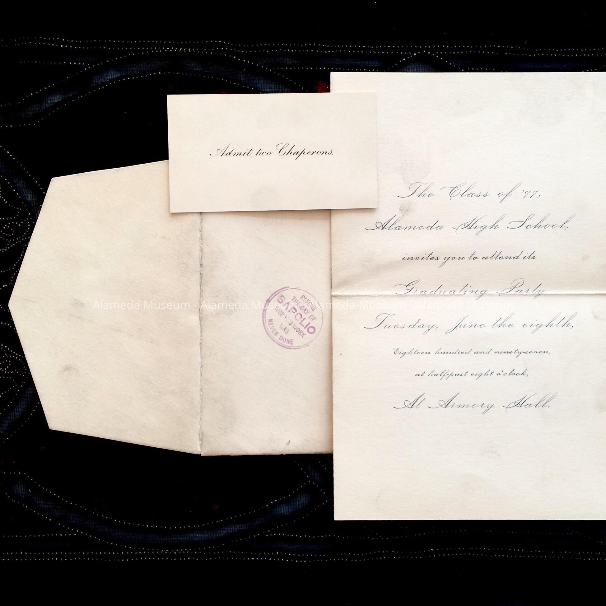 Envelope with invitation to a graduation party, Alameda High School, class of 1897Entry/Object ID