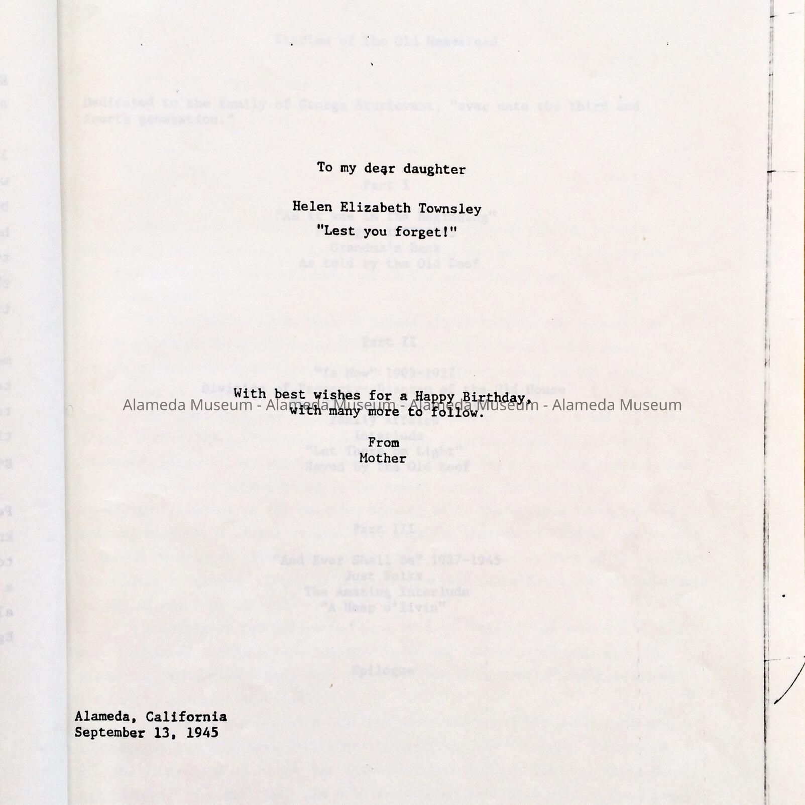 Essay 'Stories of the Old Homestead' by Sue G. Sturtevant, 1945Entry/Object ID