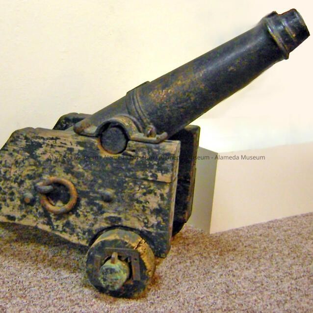 THIS CANNON HAS ON EXHIBIT FOR MANY YEARS IN THE ALASKA PACKERS GROUNDS. IT WAS DONATED TO THE ALAMEDA HISTORICAL SOCIETY BY MR. SUMNER GRAHAM OF ENCINAL TERMINALS, SUCCESSORS TO ALASKA PACKERS, IN OCTOBER, 1953.