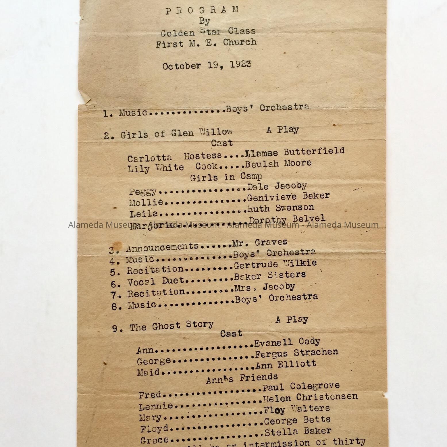 PROGRAM BY GOLDEN STAR CLASS, FIRST METHODIST CHURCH, OCT 19, 1923.
