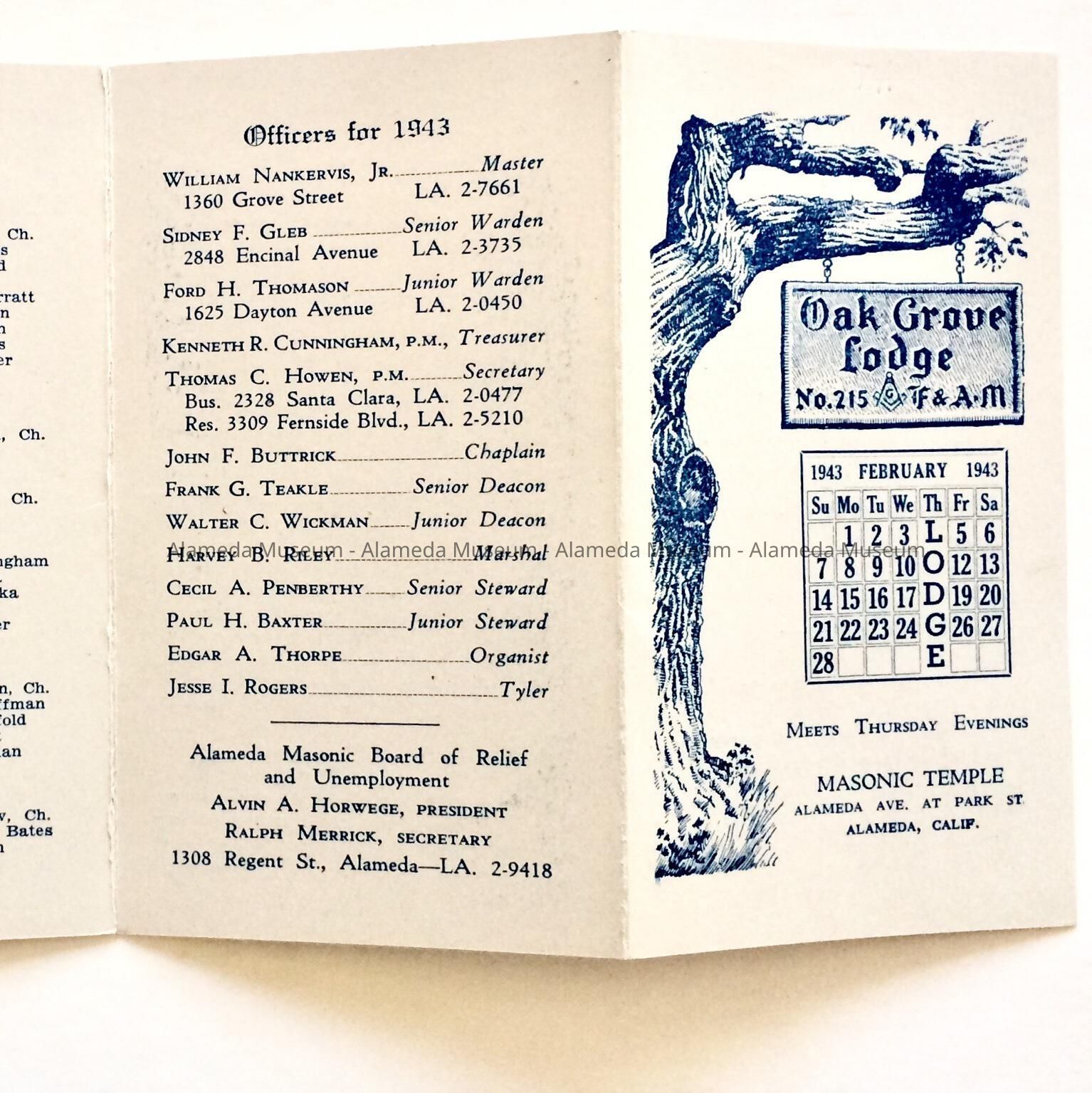Event Program Oak Grove Lodge (Masons), 1943Entry/Object ID