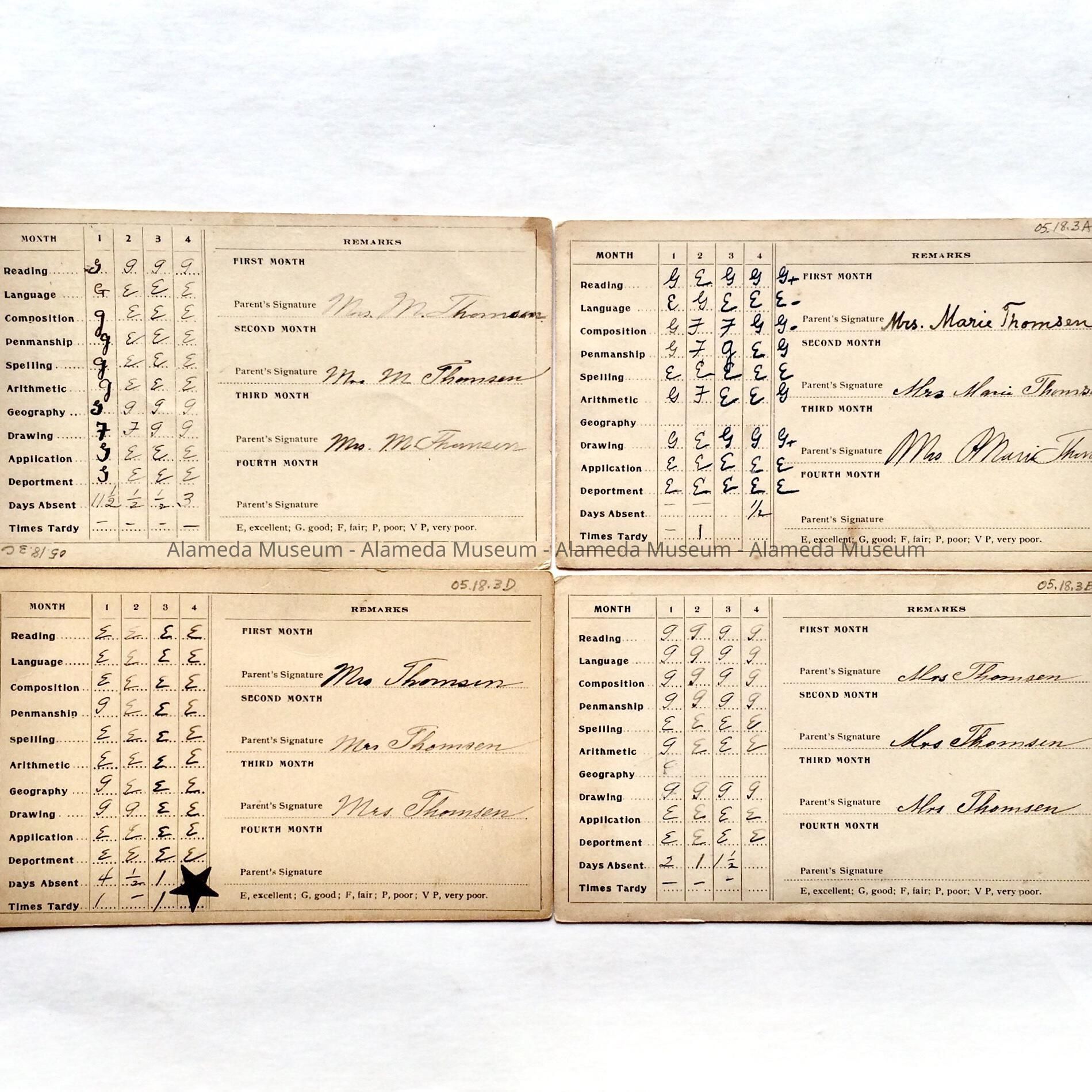 Everett School Report Cards for Karen Thomsen, 1906-1908Entry/Object ID