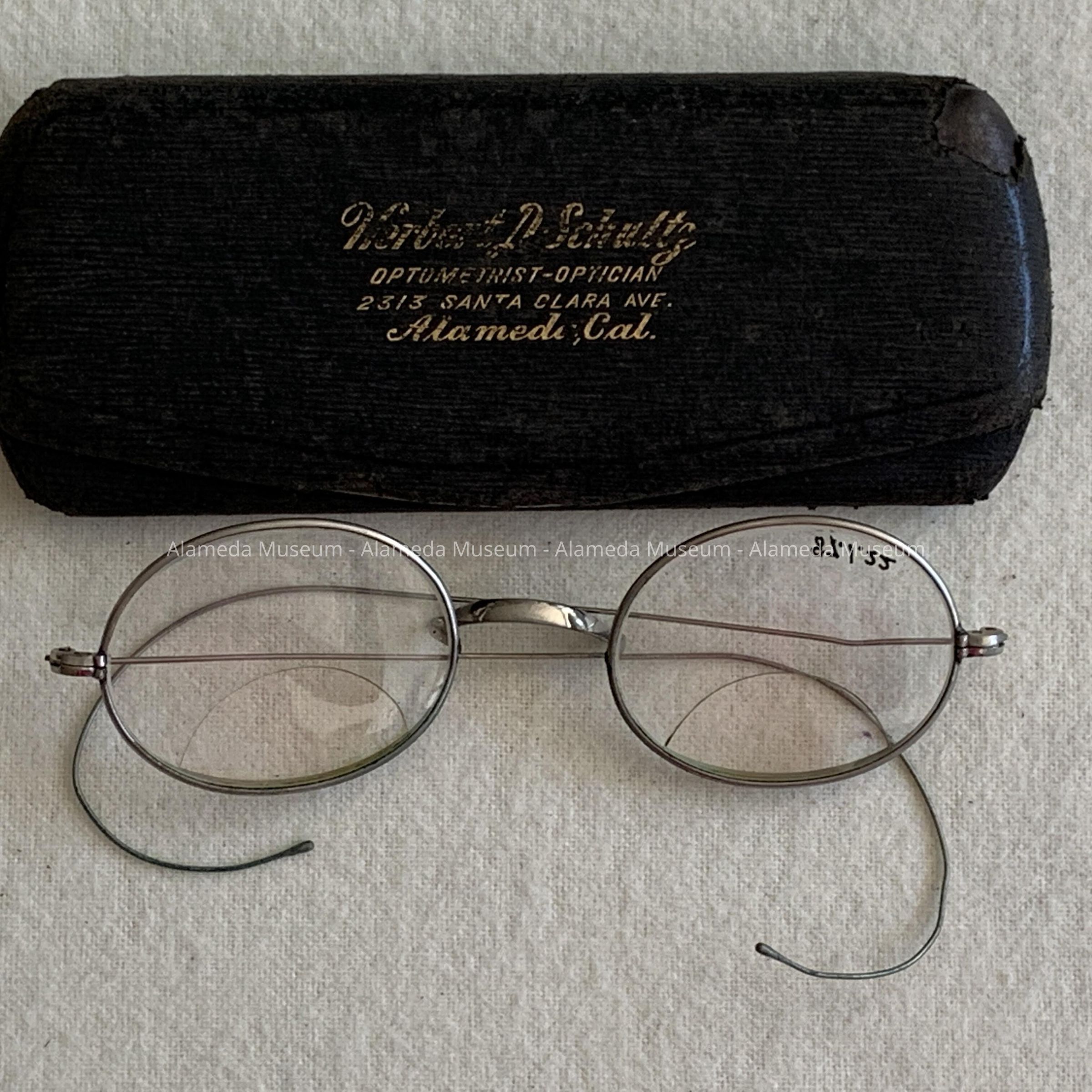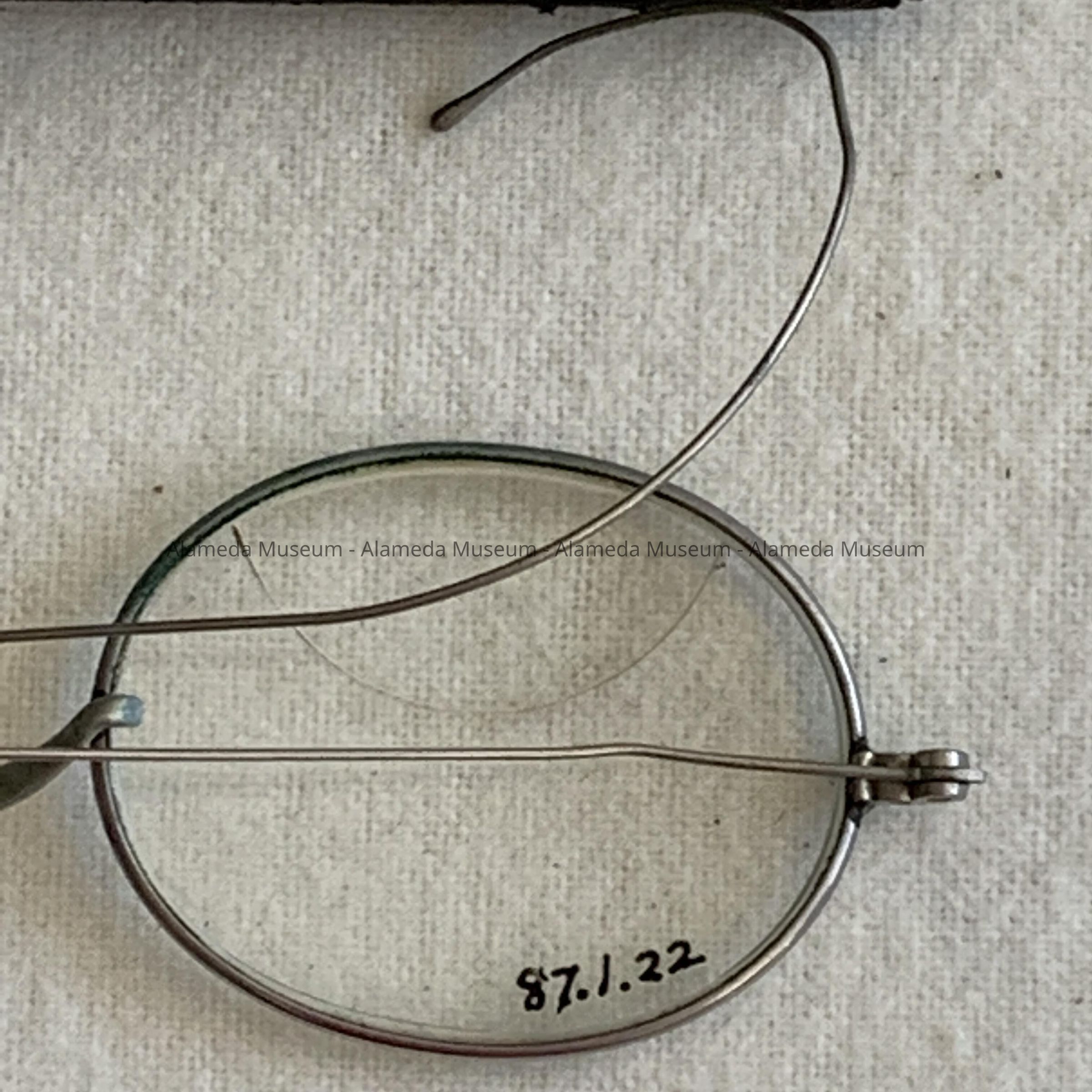 Eyeglasses belonging to an unidentified member of the H. H. Meyers family, old-time residents of Alameda.