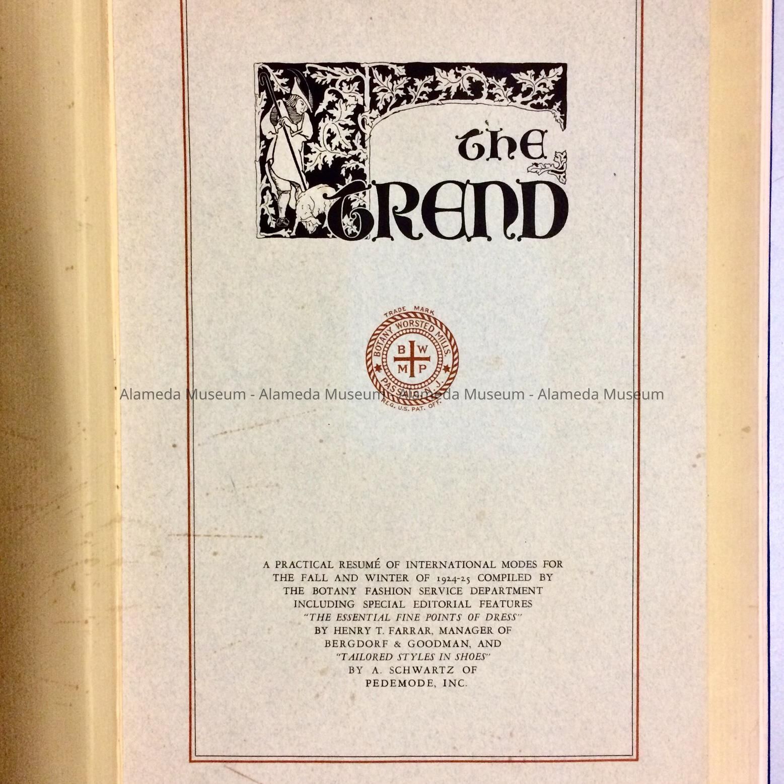 Description: Hardbound book with cover of blue colored buckram with incised caption, "The Trend" in gold colored type.
