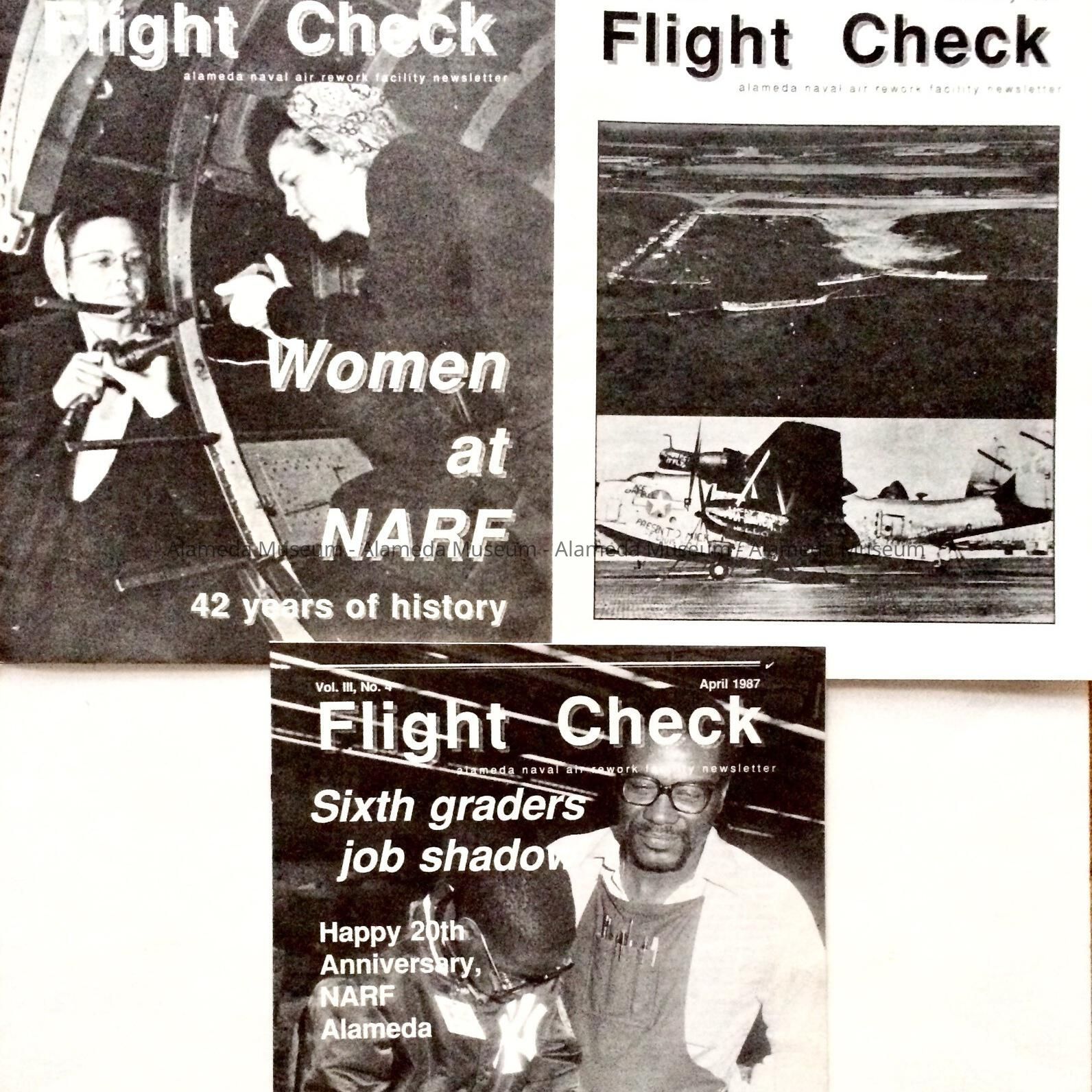 1987 EDITIONS OF THE PUBLICATION INCLUDED "FLIGHT CHECK.". ISSUED BY THE ALAMEDA AIR REWORK FACILITY, AS A NEWSLETTER. PUBLICATIONS CONTAIN COPIES OF HISTORICAL PHOTOGRAPHS AND ARTICLES CONCERNING THE FOUNDING OF THE ALAMEDA NAVAL AIR STATION, EMPLOYEE INFORMATION, ETC.