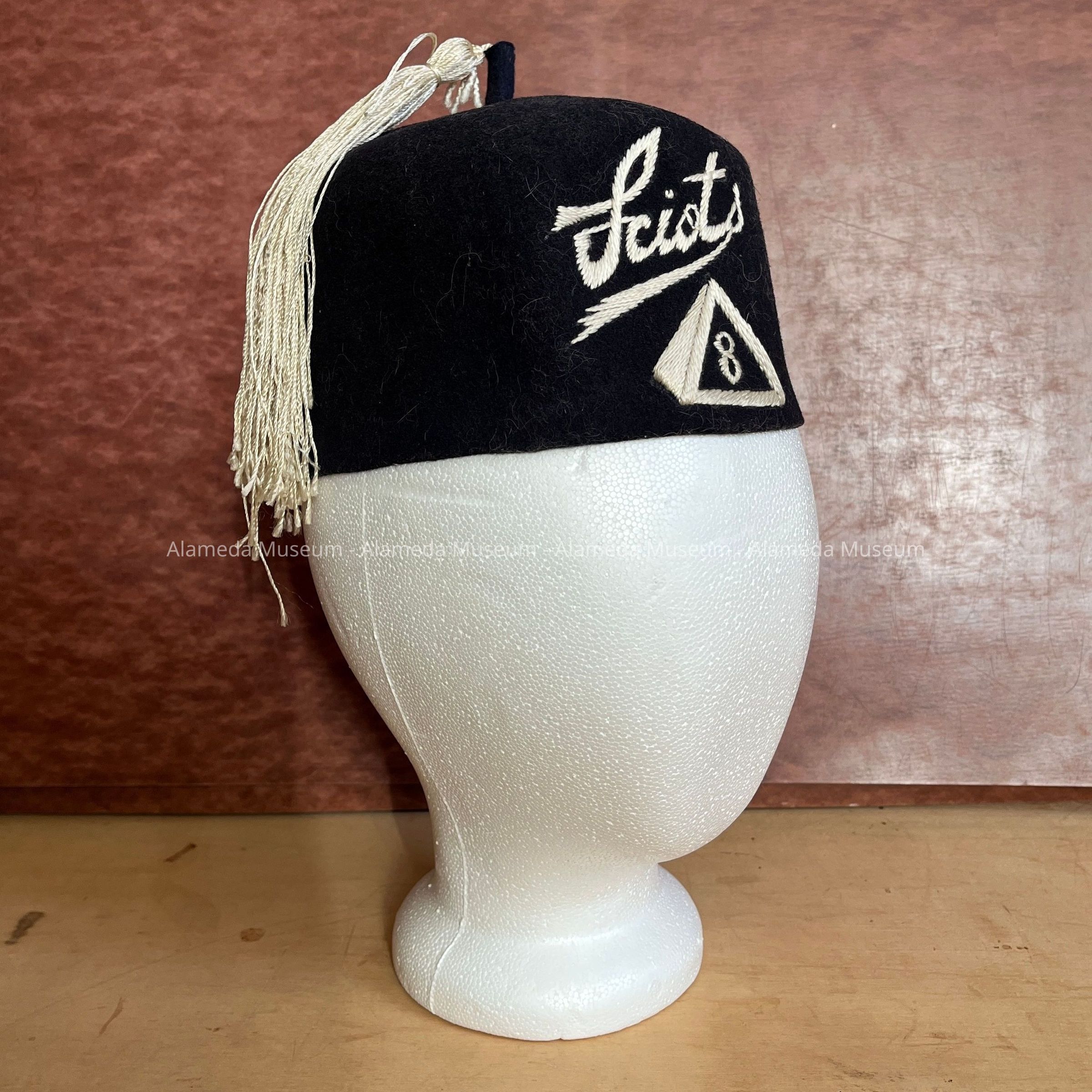 History of Object: fez of the order of Sciots of Rudy or Walter Taube. The family moved to Alameda in the 1900s, building their home at 1815 Wood street in 1914. Daughter Margaret was born in 1914, son Walter in 1925, and Rudy on 7/2/1925.