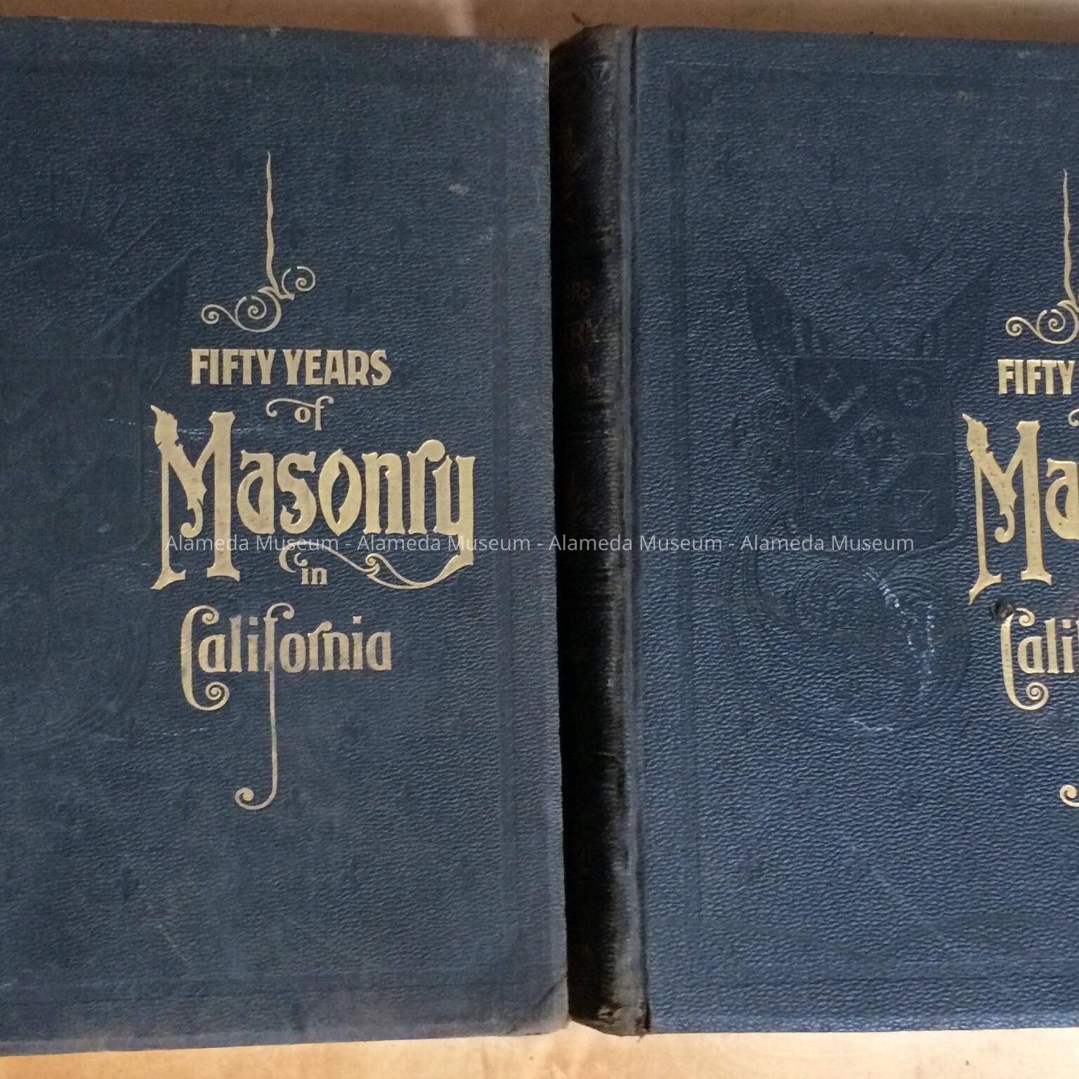 History of Object: Volume 1 & 2, "Fifty Years of Masonry in California, compiled and edited by Edwin A. Sherman, George Spaulding & Co., publishers, S. F., Calif., 1898. Page 591 & 601, volume 2, mentions the Alameda lodge and page 580, volume 2, contains an interior view, Masonic Hall, Alameda, erected 1890