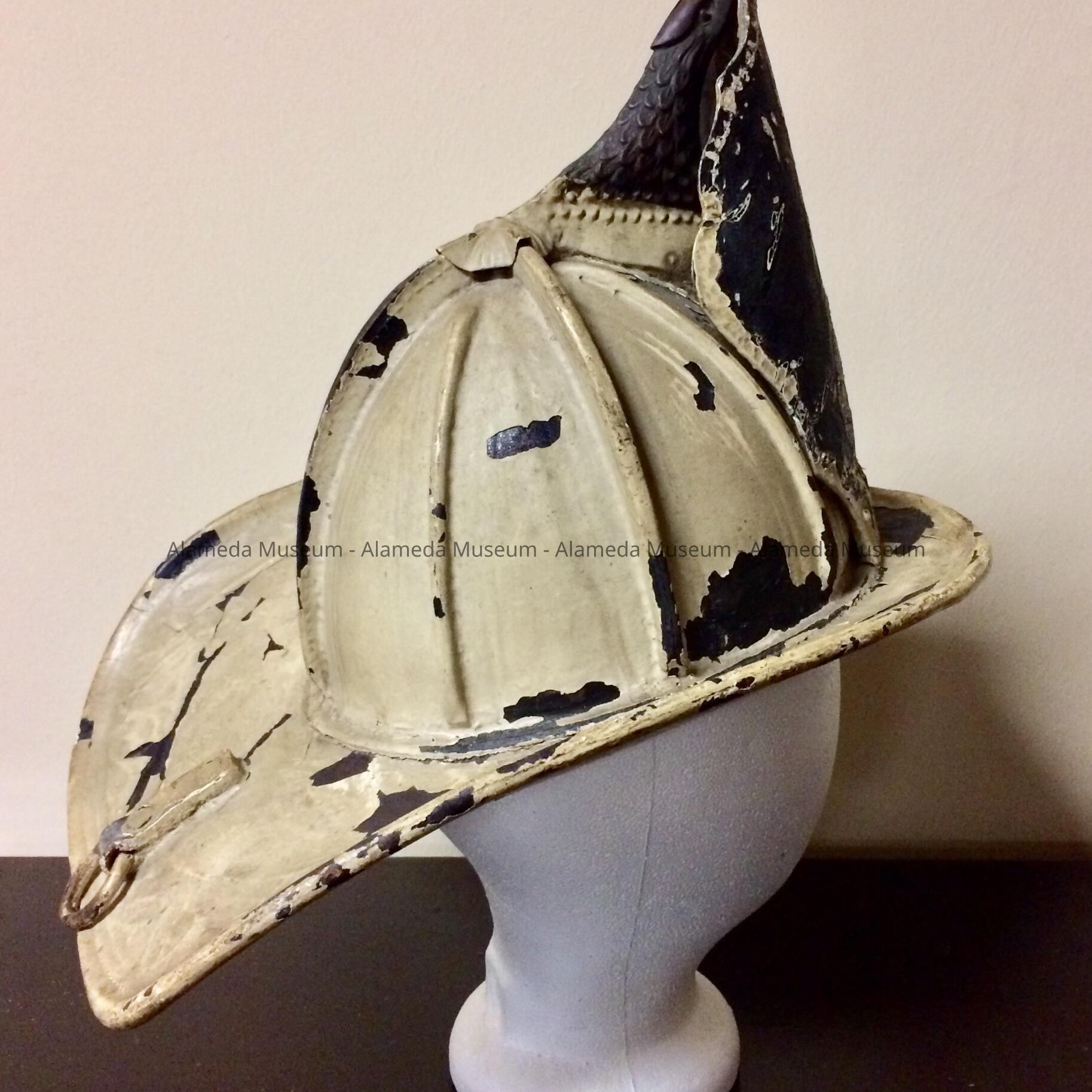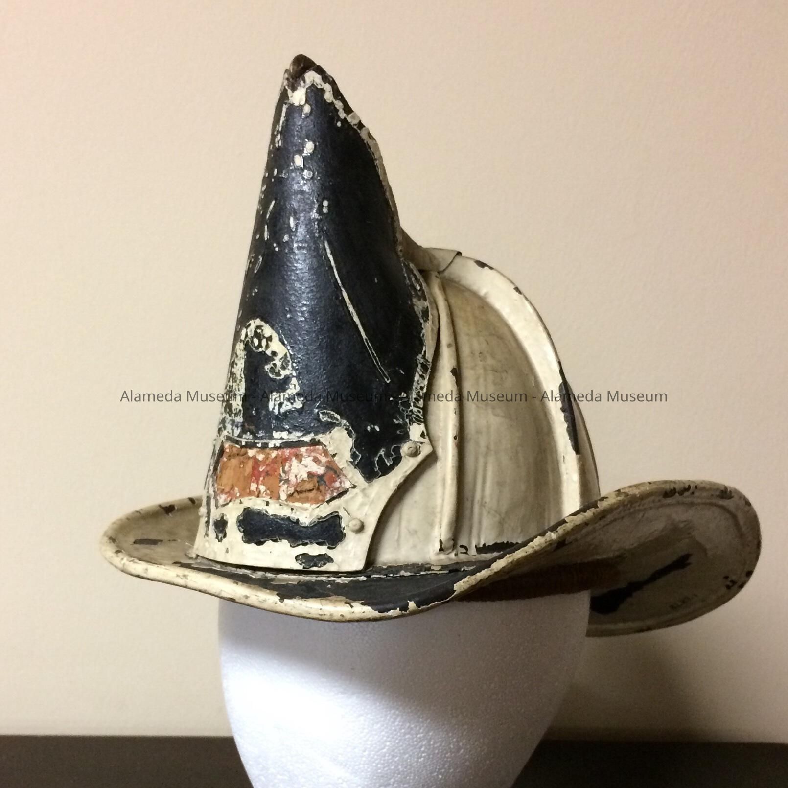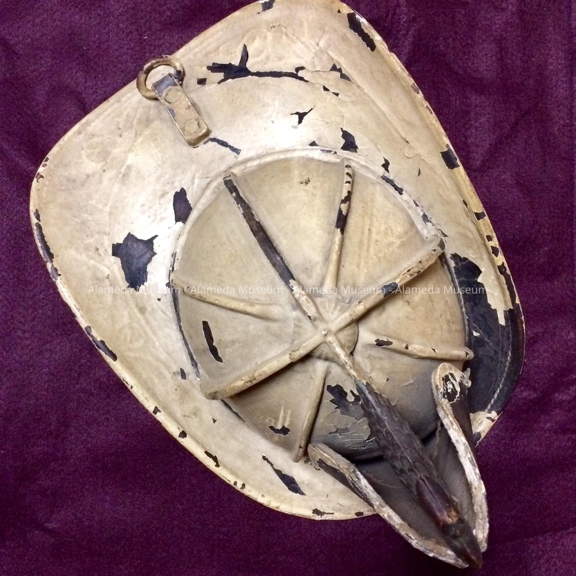 History of Object: White helmet worn by the first fire chief of the city of Alameda Fire Department.