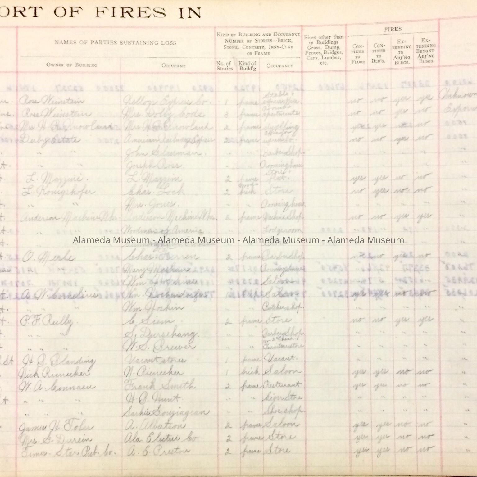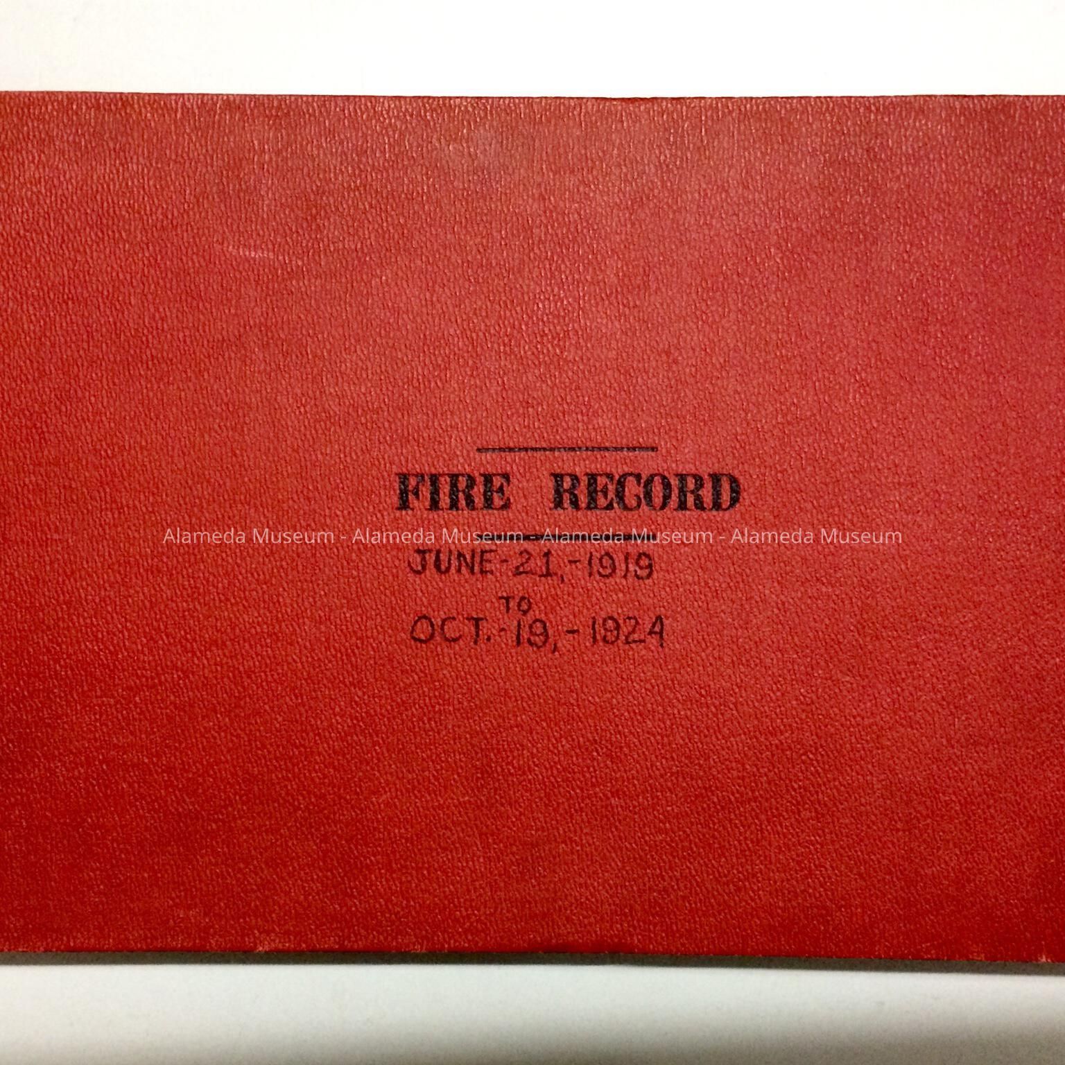 LEDGER CONTAINING STATISTICS OF FIRES IN THE CITY OF ALAMEDA FROM JUNE 21, 1919 TO OCTOBER 19, 1924. RECORDS WERE COMPILED DURING THE TENURE OF WALTER T STEINMETZ, FIRE CHIEF.