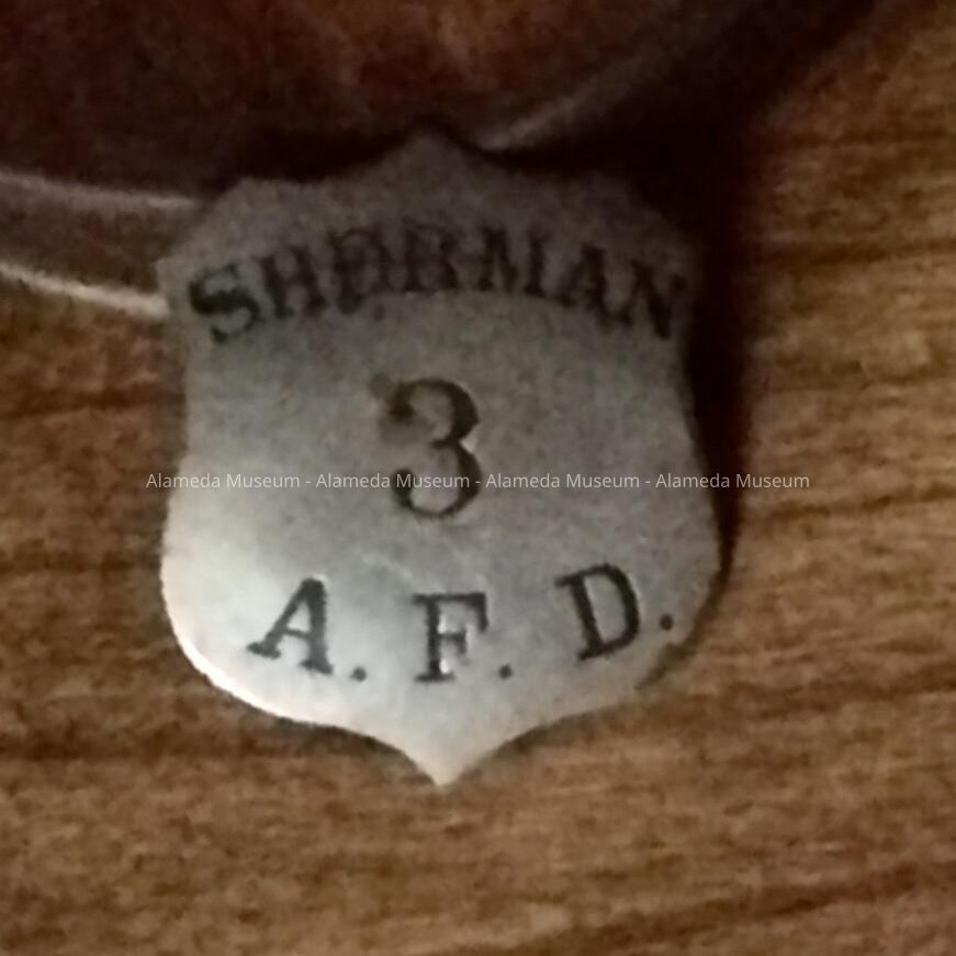HISTORY OF OBJECT: "SHERMAN 3 AFD" APPEARS ON THE BADGE WHICH WAS ISSUED FOR THE SHERMAN ST. FIRE DEPARTMENT NO. 3, ALAMEDA FIRE DEPARTMENT, CIRCA 1890's.