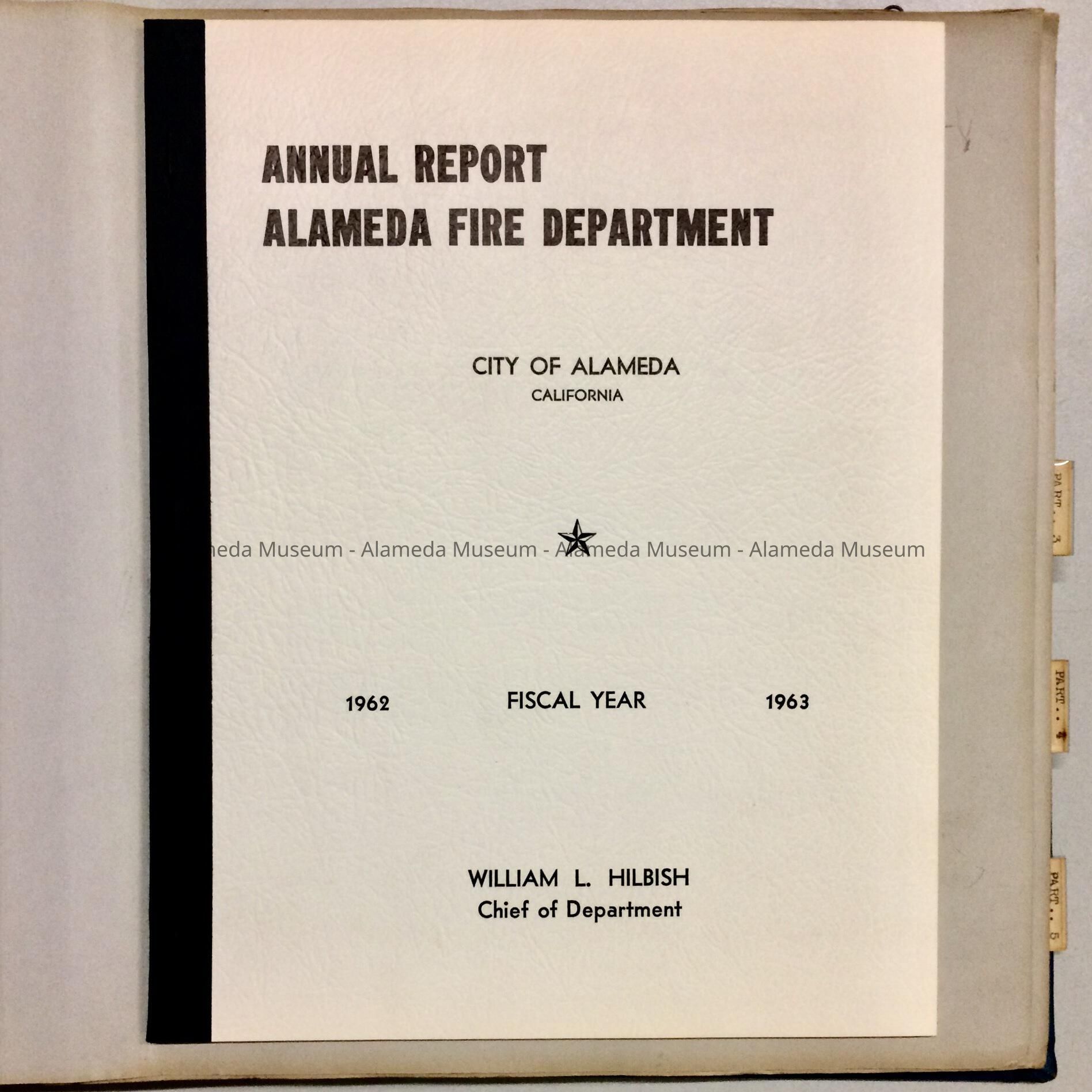 History of Object: Scrapbook containing statistics, newspaper clippings, photos of events, etc. that concern the Alameda Fire Dept. including some interior photos of Webb Ave. firehouse now demolished.