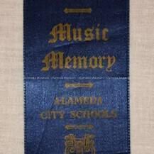 History of Object: First Prize ribbon for a music memory contest awarded by the Alameda Public Schools in 1934.