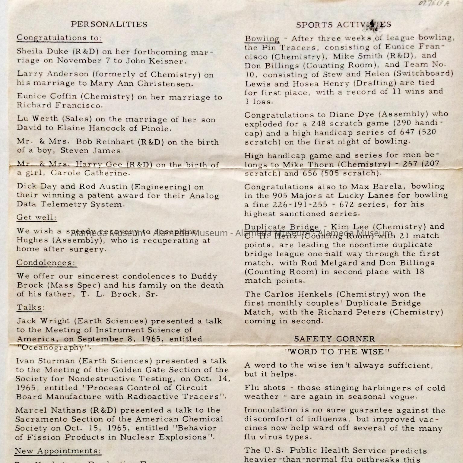 'Fission Chips' for October 1965 with biography of Bunny Fergus RussEntry/Object ID
