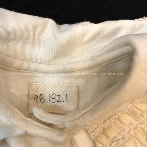 BABY JACKET OR COAT FROM THE JOSEPH AND MARGARET SMITH FAMILY. THE SMITH'S CAME FROM COLORADO IN THE 1940's. MR SMITH WORKED FOR THE ALAMEDA BRIDGE COMPANY, STARTIN 1943. HIS DAUGHTER, JUDITH SMITH, GRADUATED FROM ALAMEDA HIGH SCHOOL IN 1957 AND MARRIED THE DONOR.