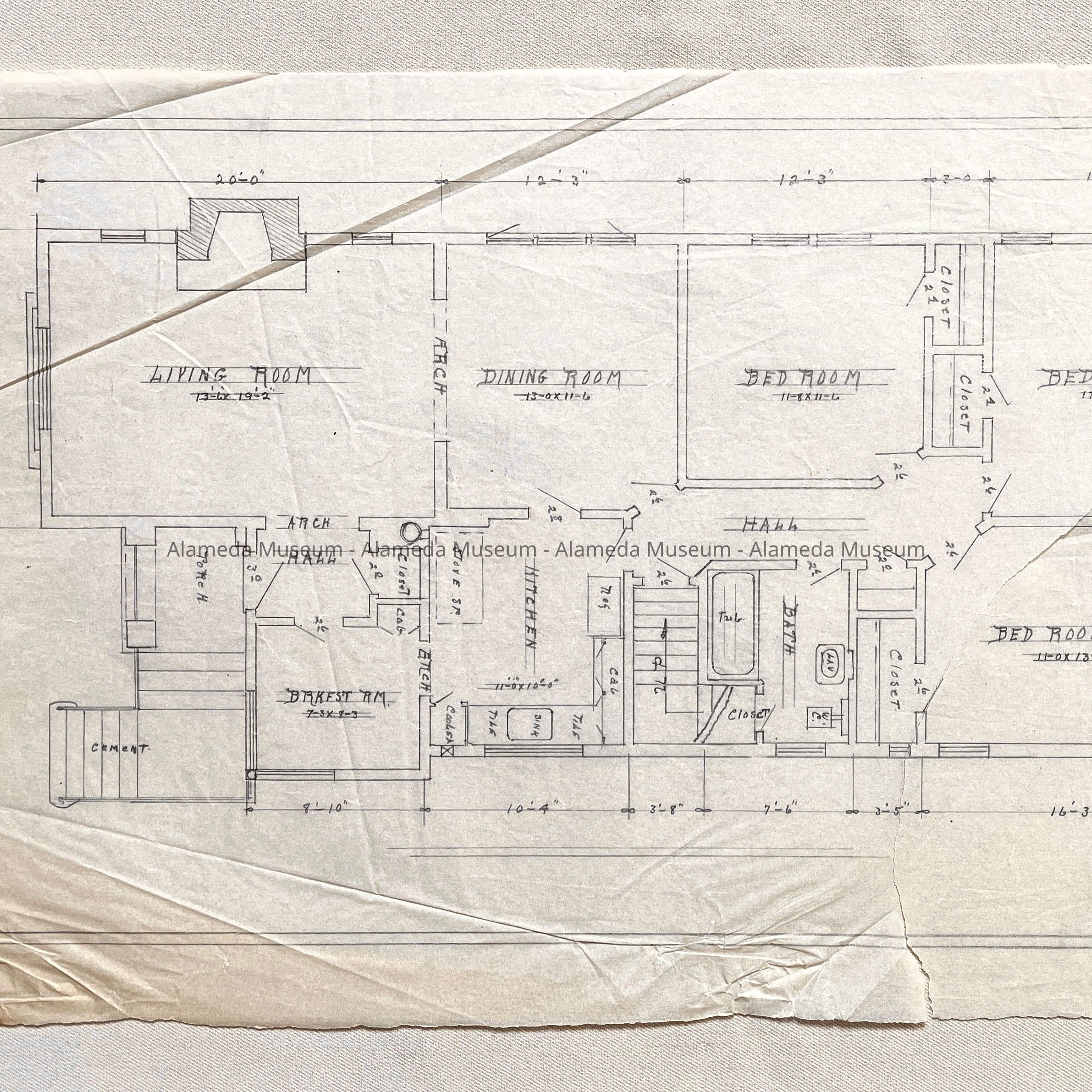 History of Objects: A drawing likely from the attic of the Office of H.G. or C.G. Mehrtens, real estate brokers. The address of this house is unknown.