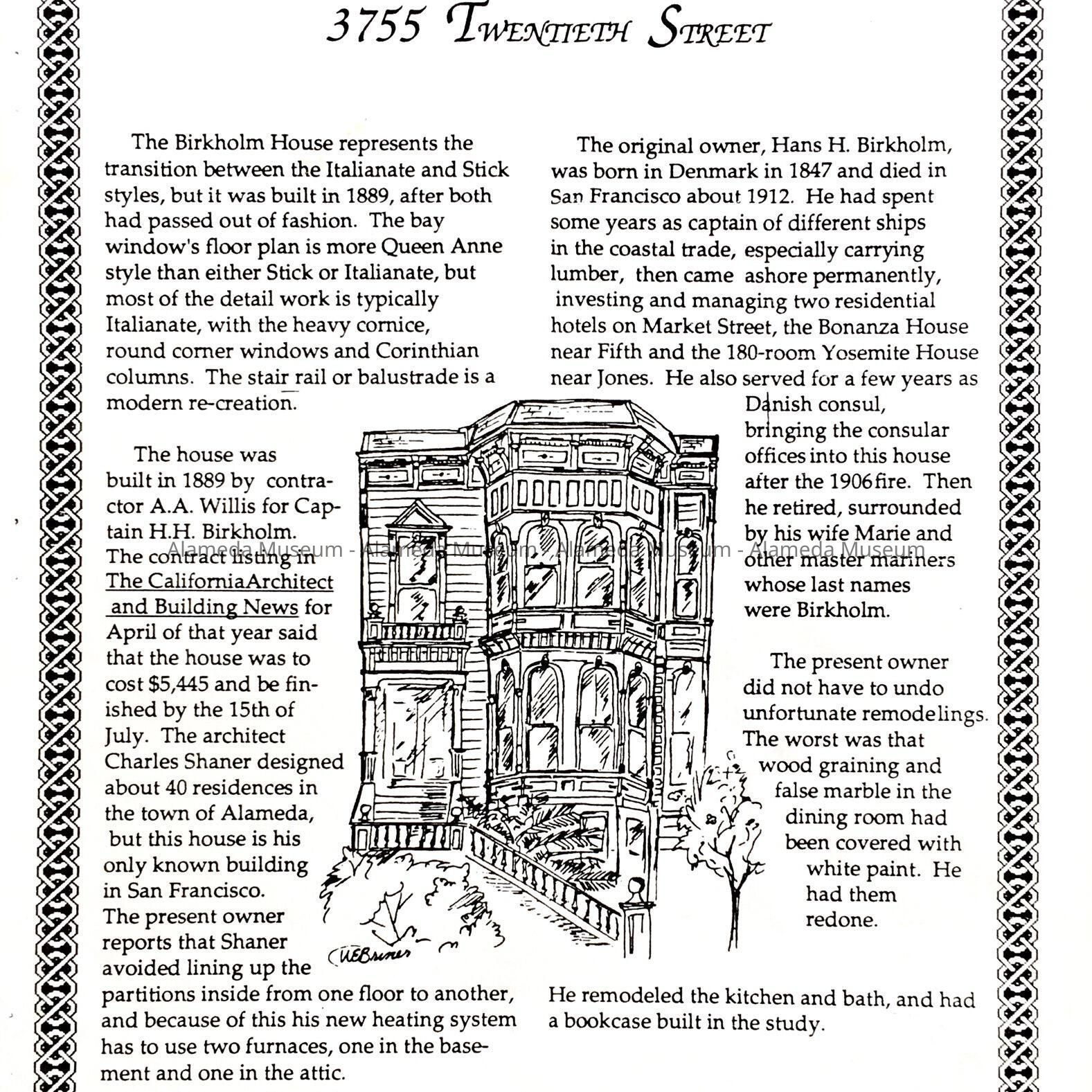 HISTORY OF OBJECT: FLIER PRODUCED FOR A SAN FRANCISCO HOME TOUR, WITH A HISTORY OF THE HOME LOCATED AT 3755 20th STREET. THE HOUSE WAS ERECTED IN 1889 AND WAS DESIGNED BY ALAMEDA ARTIST CHARLES SHANER.