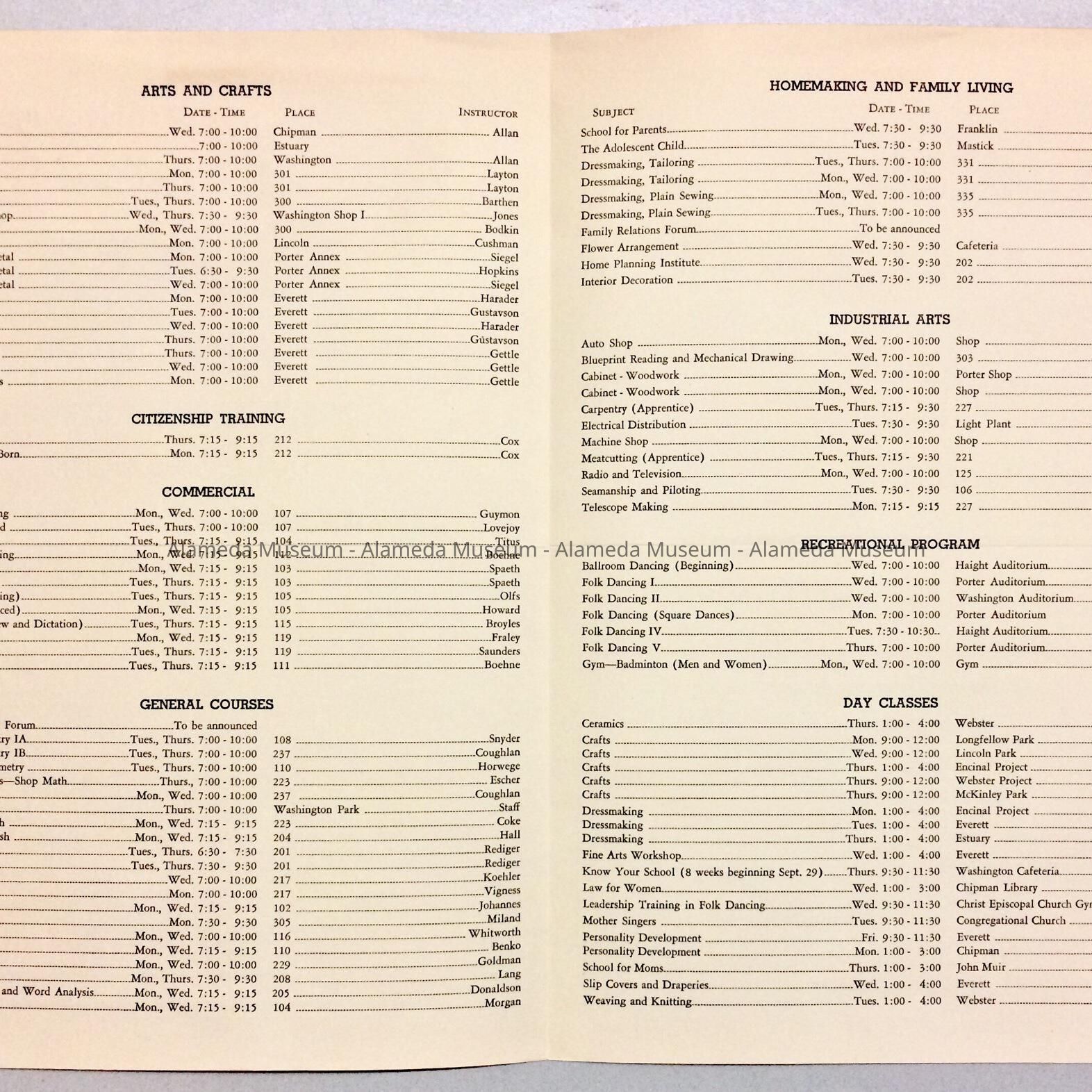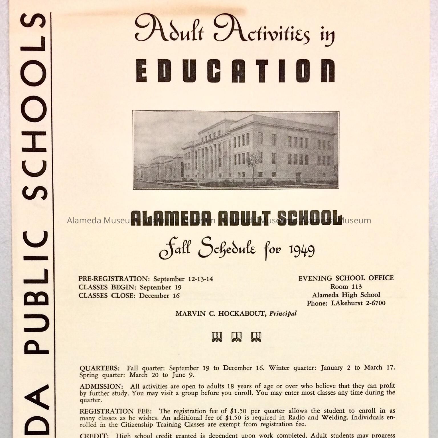 Flyer for Alameda Adult School, Fall 1949Entry/Object ID