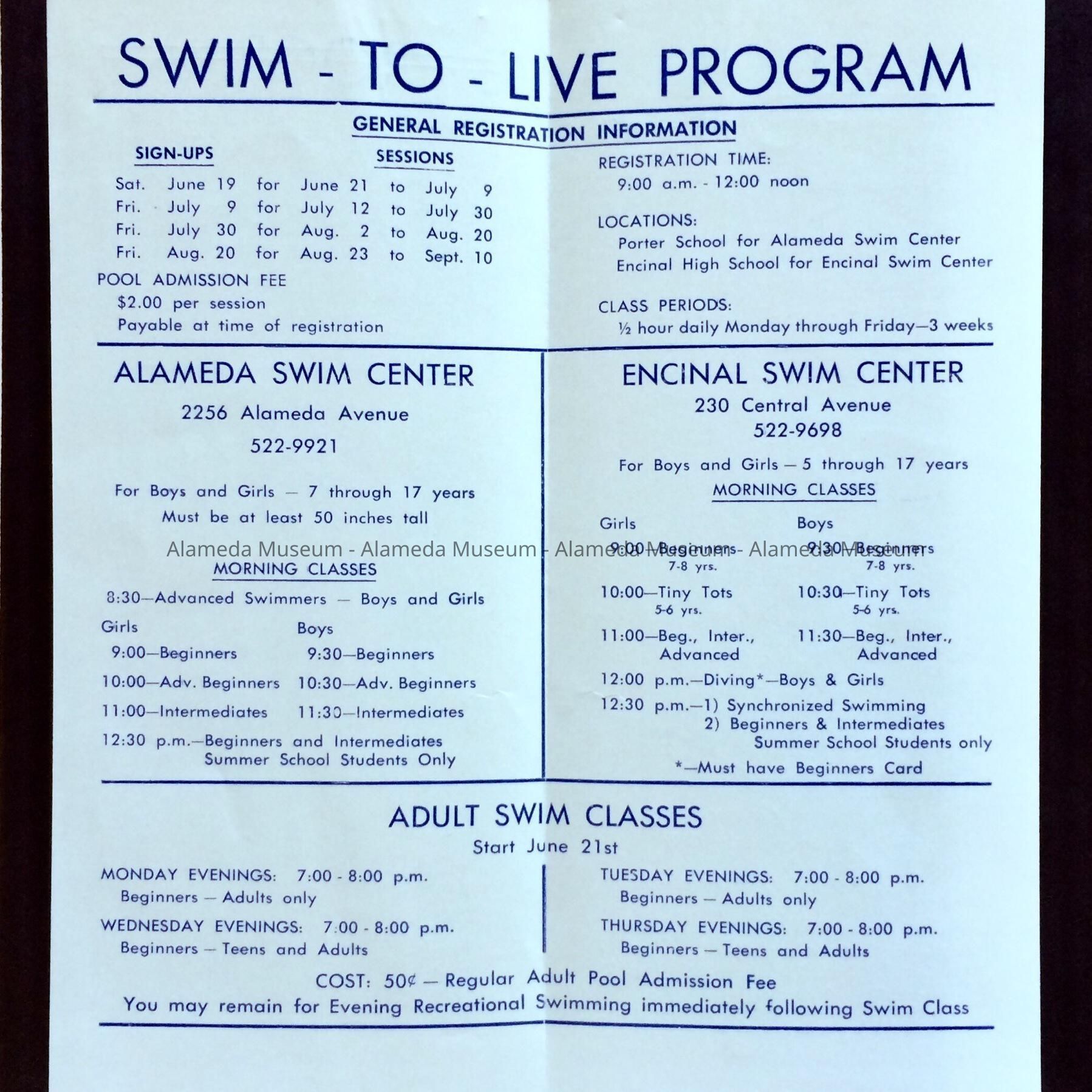 Flyer for Aquatic Program, City of Alameda, 1965Entry/Object ID