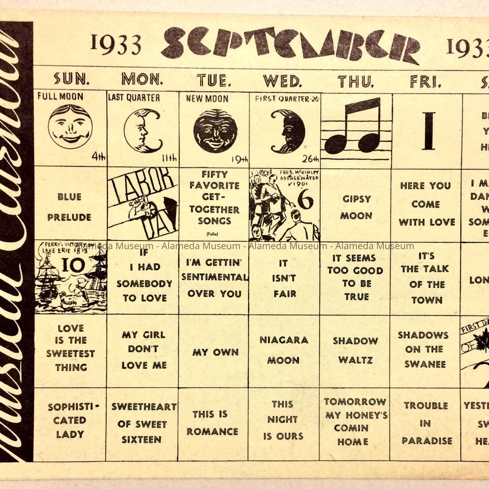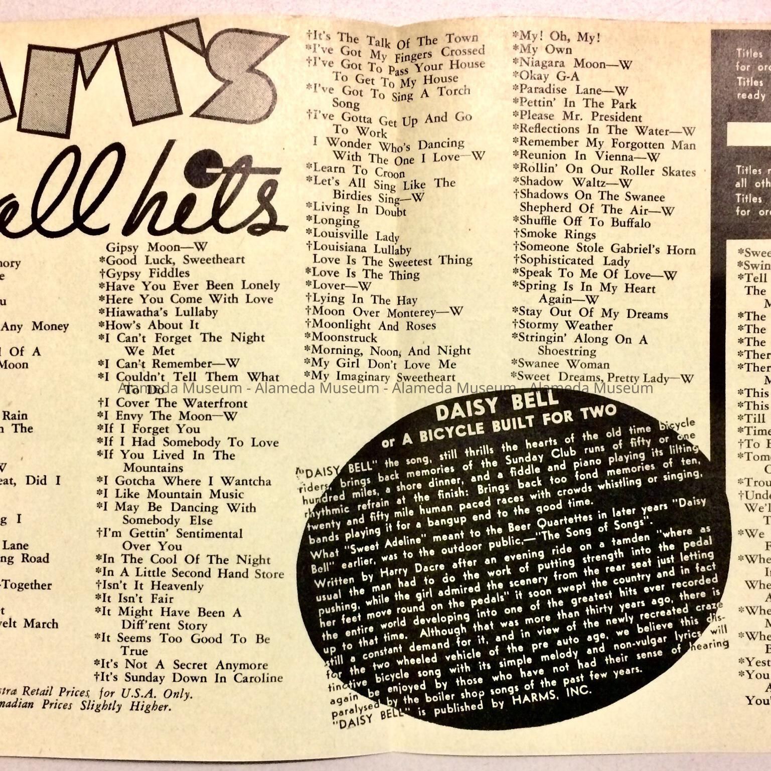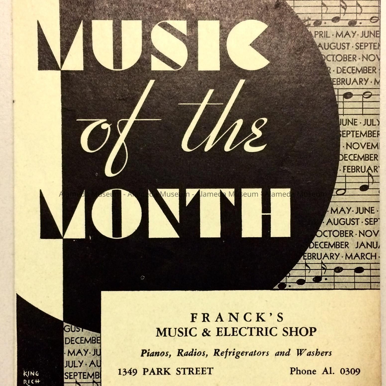 History of Object: Flier from Franck's Music and Electric Shop, 1349 Park Street, advertising the musical hits of September 1933.