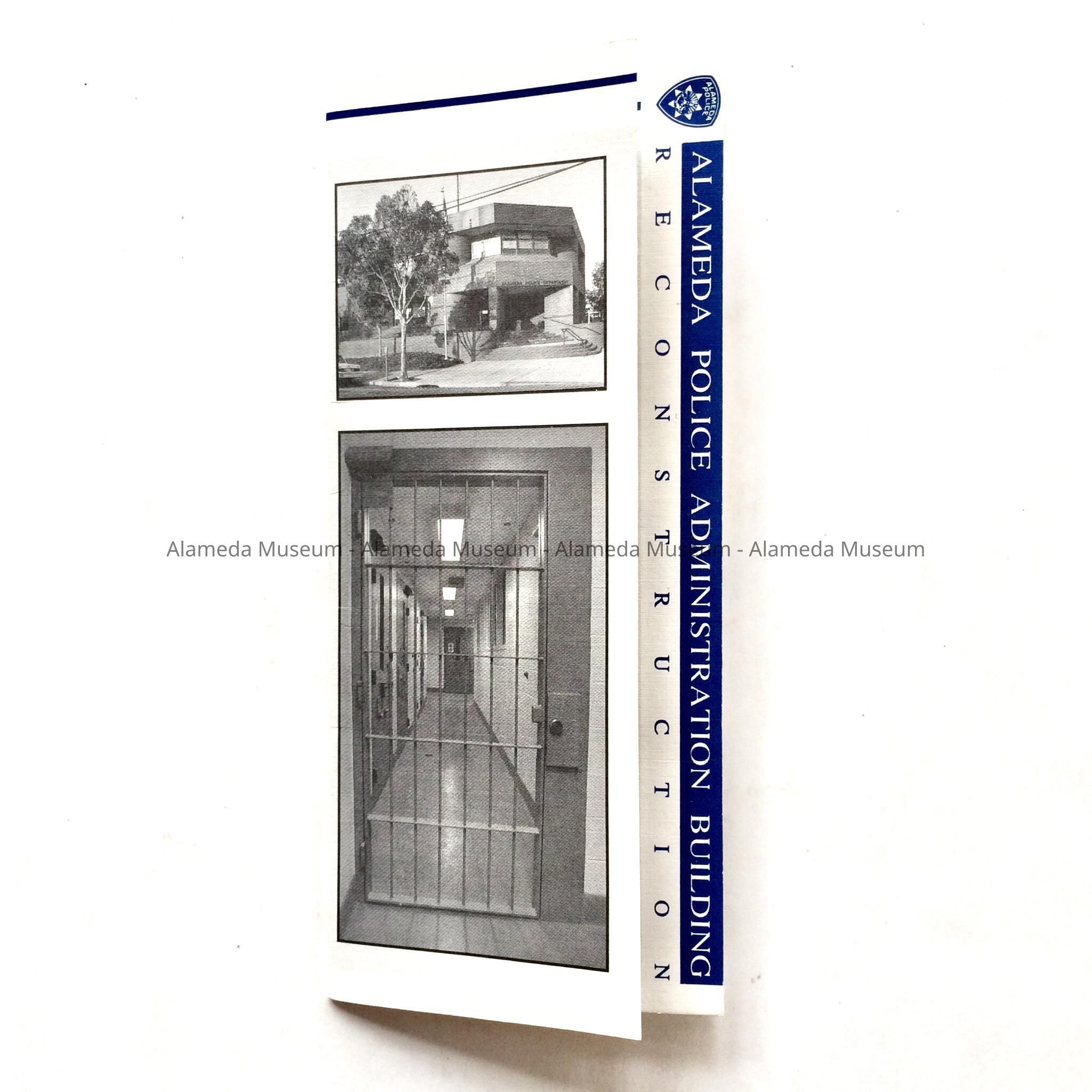 DESCRIPTION: AN ILLUSTRATED FLIER THAT FOLDS INTO FOUR SECTIONS. COVER HAS A BOLD-PRINTED CAPTION, "ALAMEDA POLICE ADMINISTRATION BUILDING."