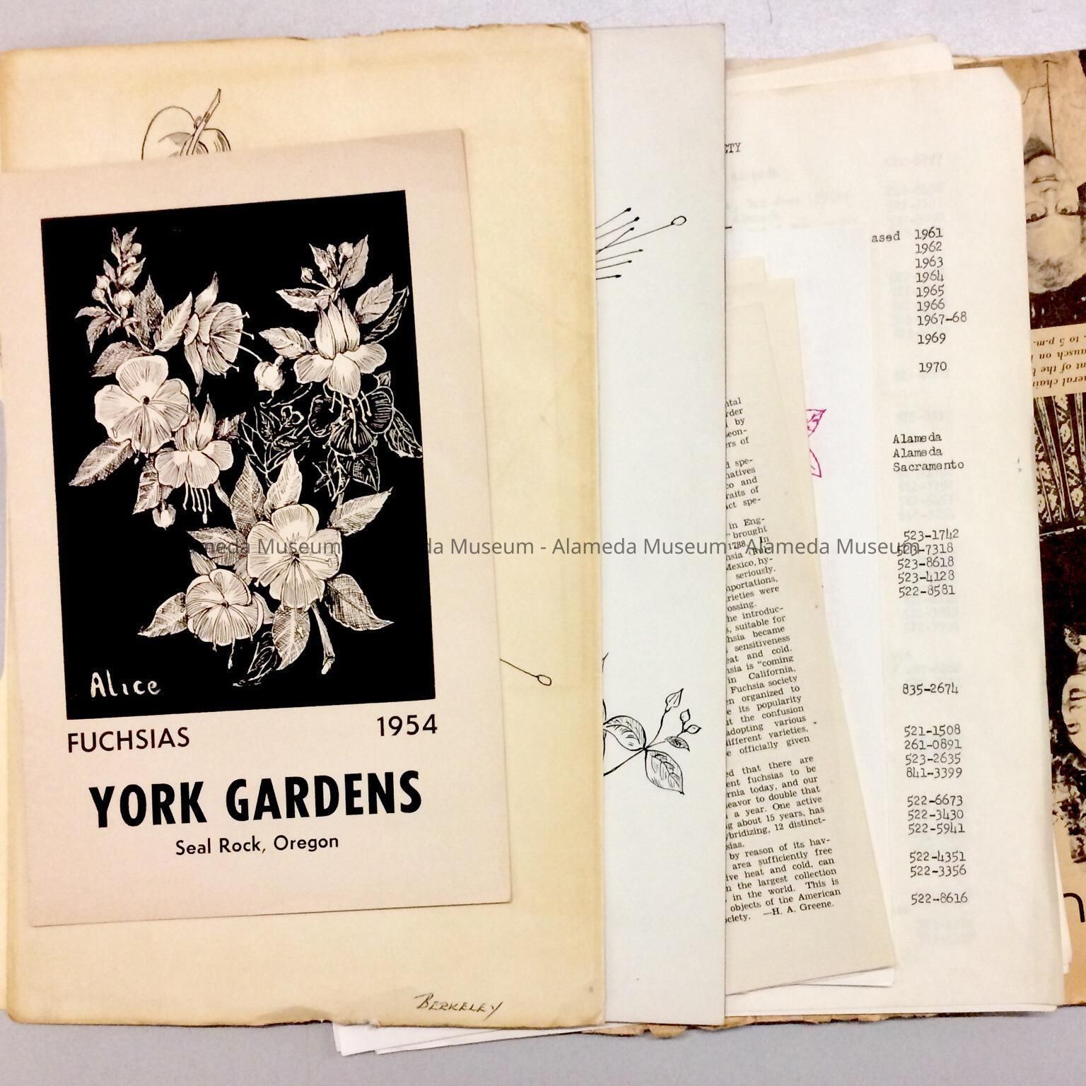 History: Miscellaneous rosters, news clippings, programs, etc., of the Alameda Branch of the American Fuchsia Society.