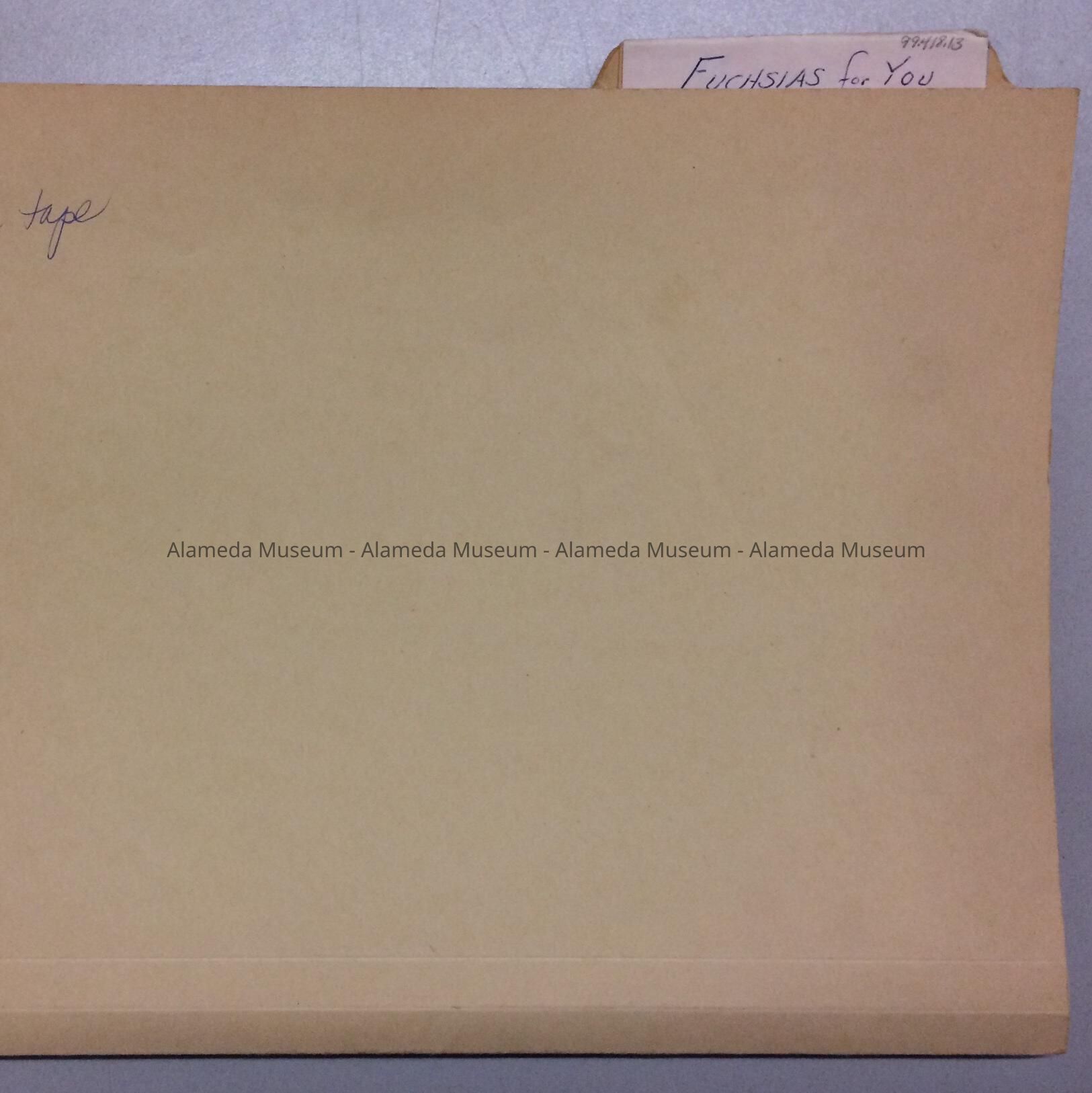 Description: Miscellaneous programs, hand written documents, stationery, etc., contained in a manila colored folder. Folder has tab with caption "Fuchsias For You".