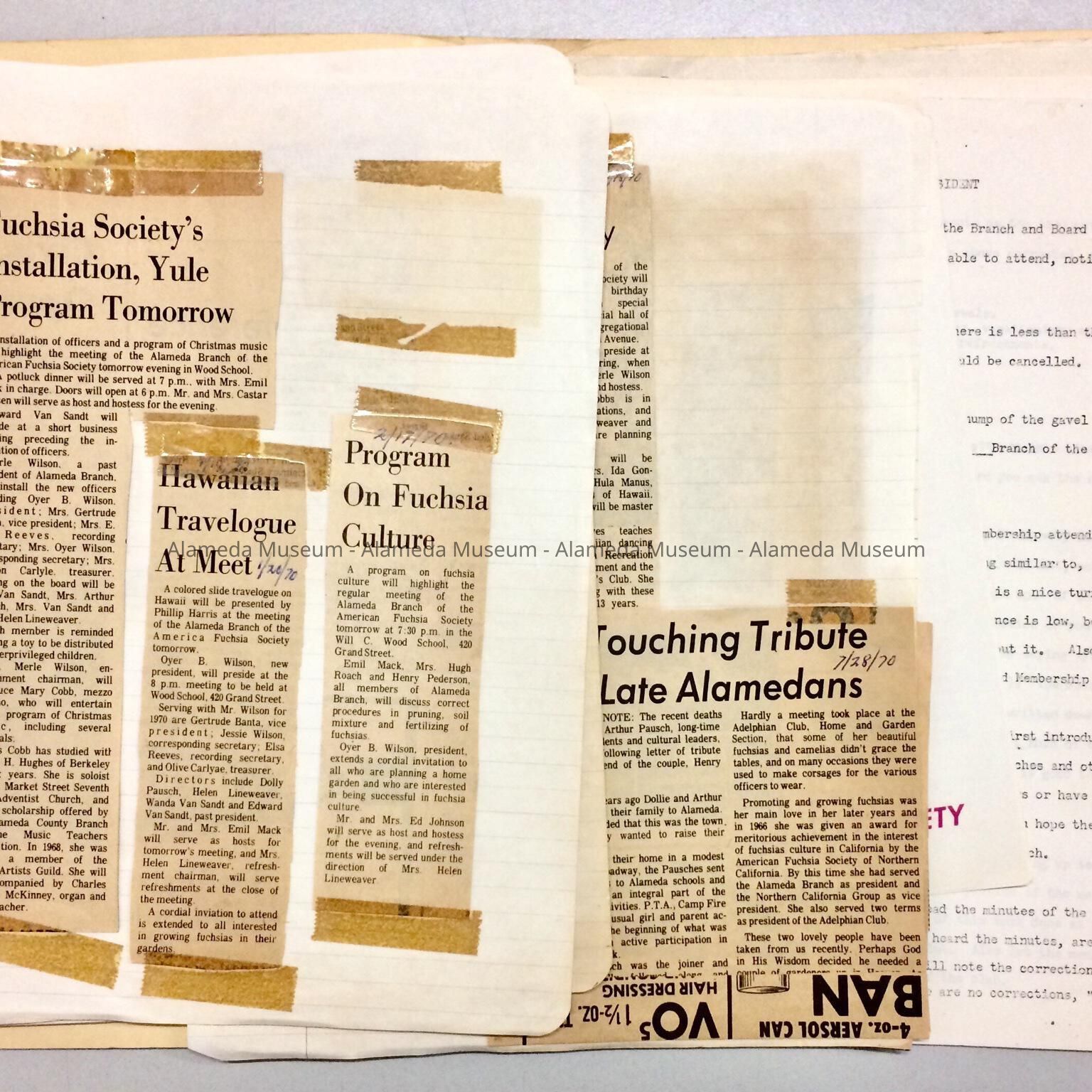 Newspaper clippings, etc., concerning events of the Alameda Branch of the American Fuchsia Society.