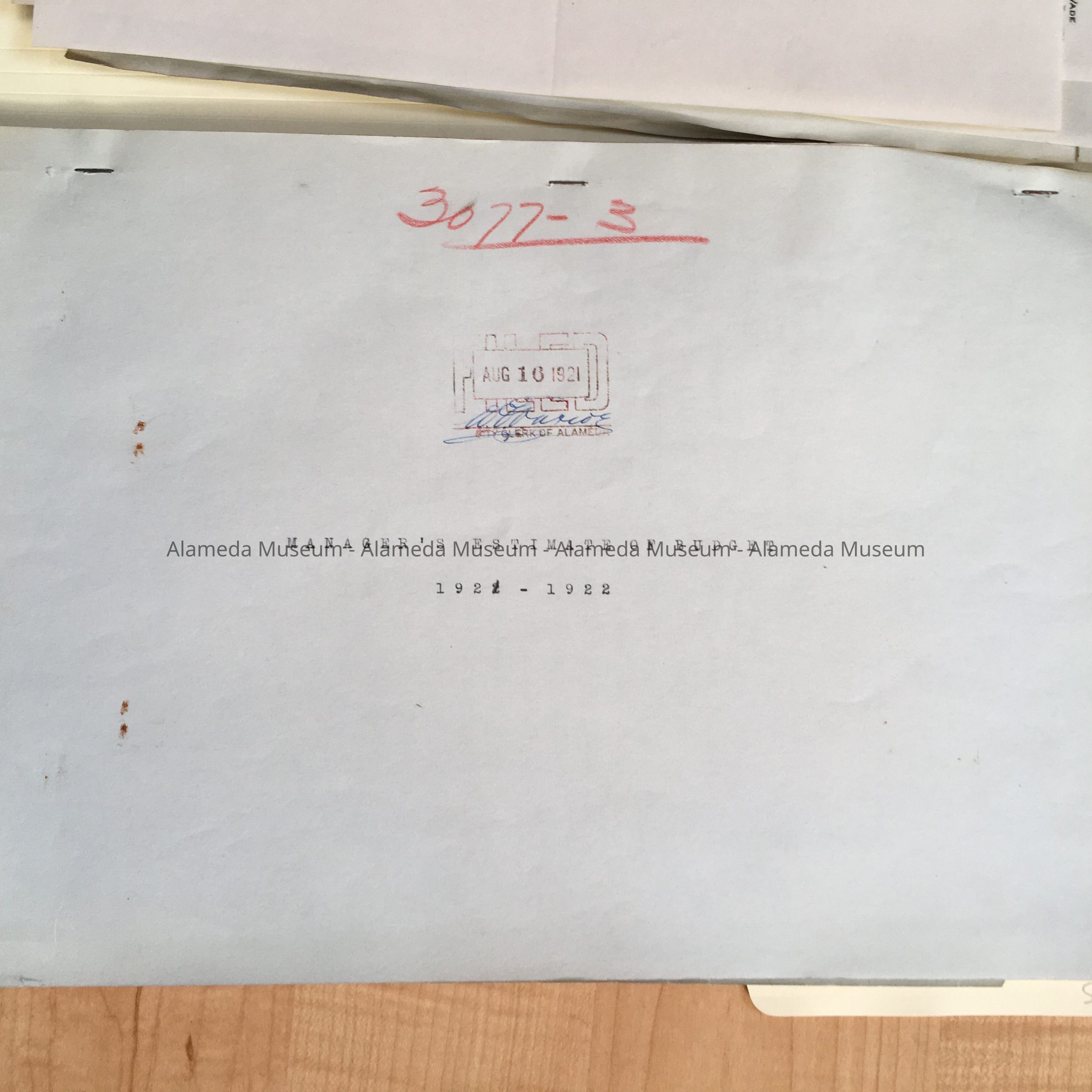 History of Object: 1921 budget (3077-2 & 3077-3), miscellaneous city documents.