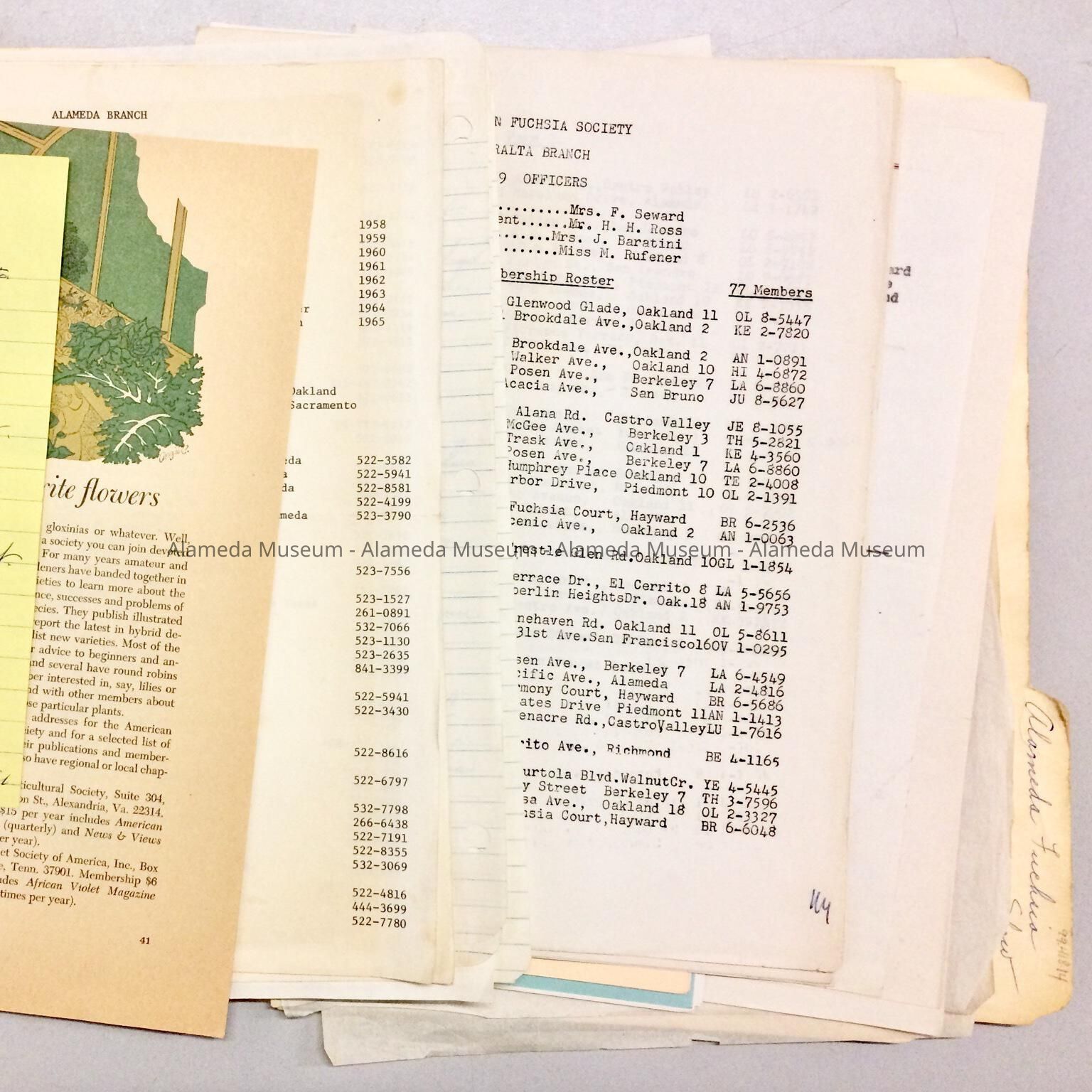 Folder marked 'Alameda Fuchsia Show' of the Fuchsia Society, 1950-1960Entry/Object ID