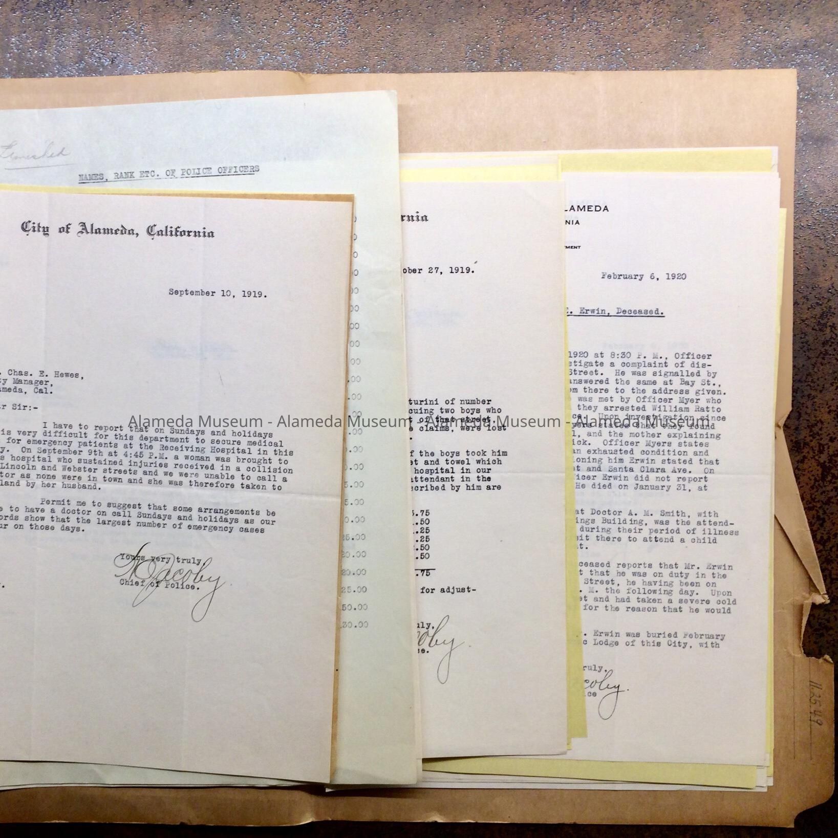 Folder of papers about the Police Department, 1919Entry/Object ID