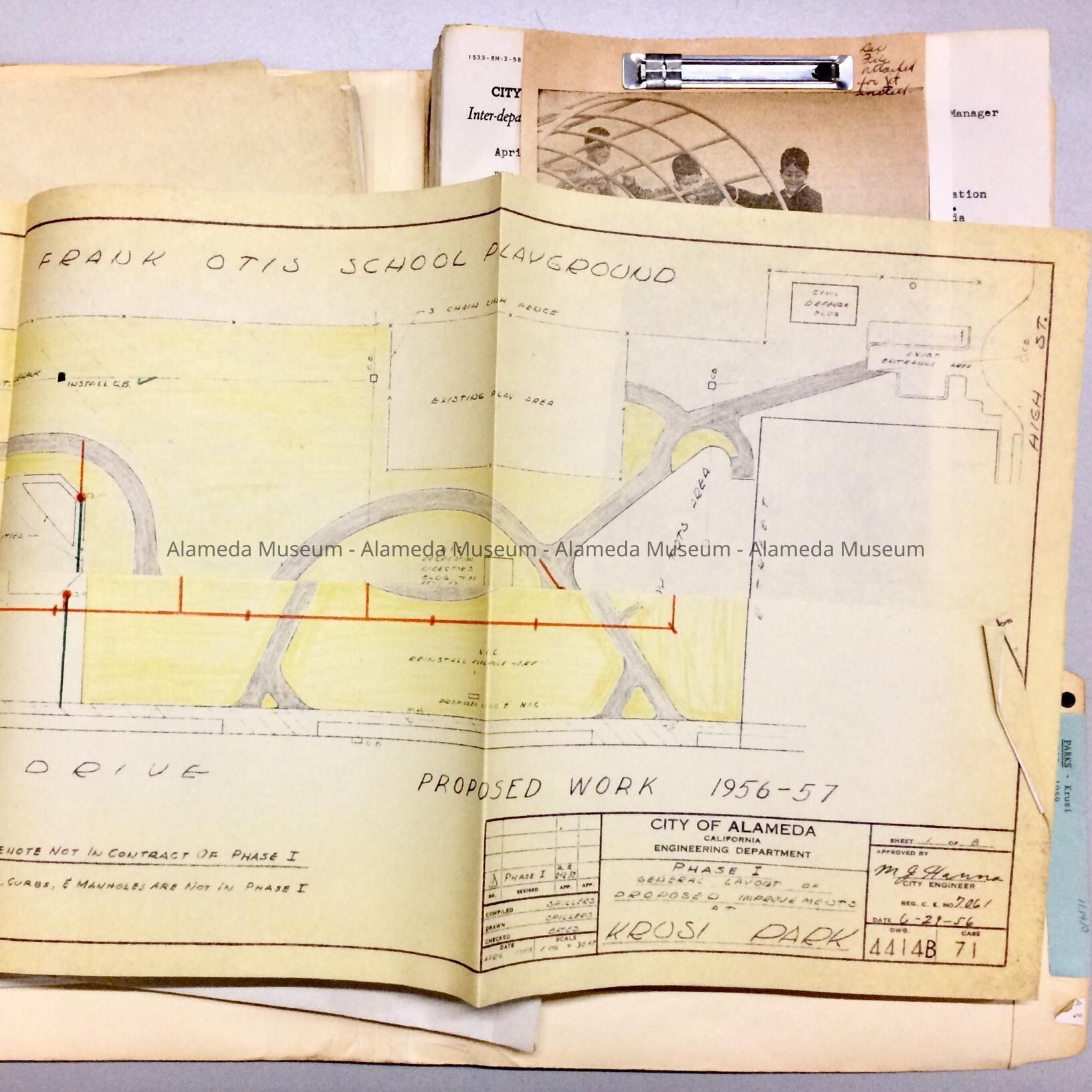 DOCUMENTS AND ASSORTED PAPERS RE DEDICATING KRUSI PARK IN ALAMEDA.