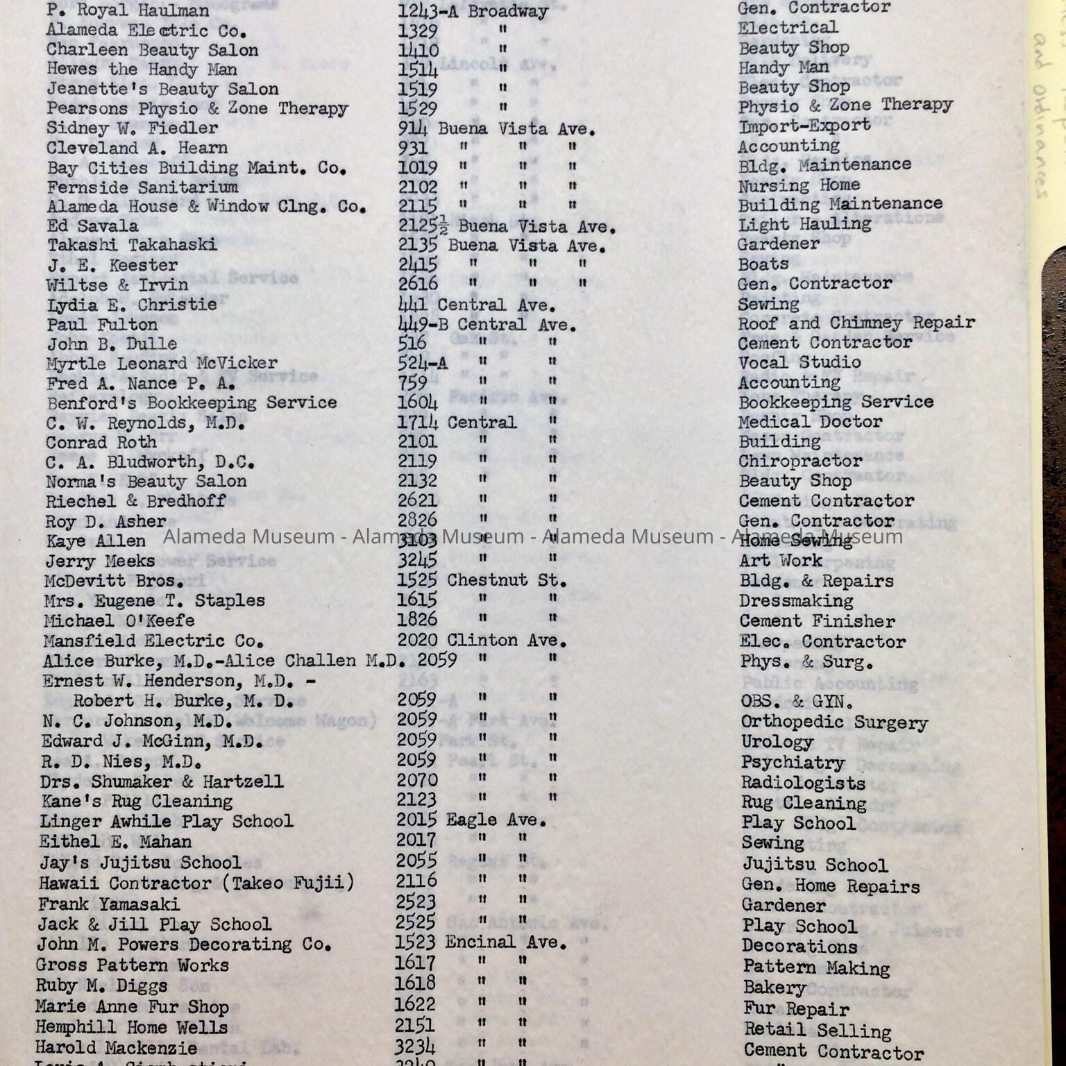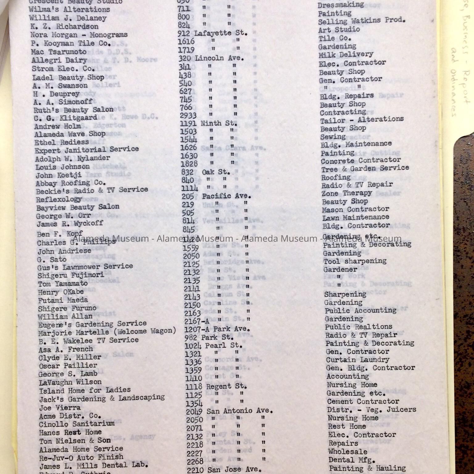 Subject Category: City of Alameda; Business of Alameda