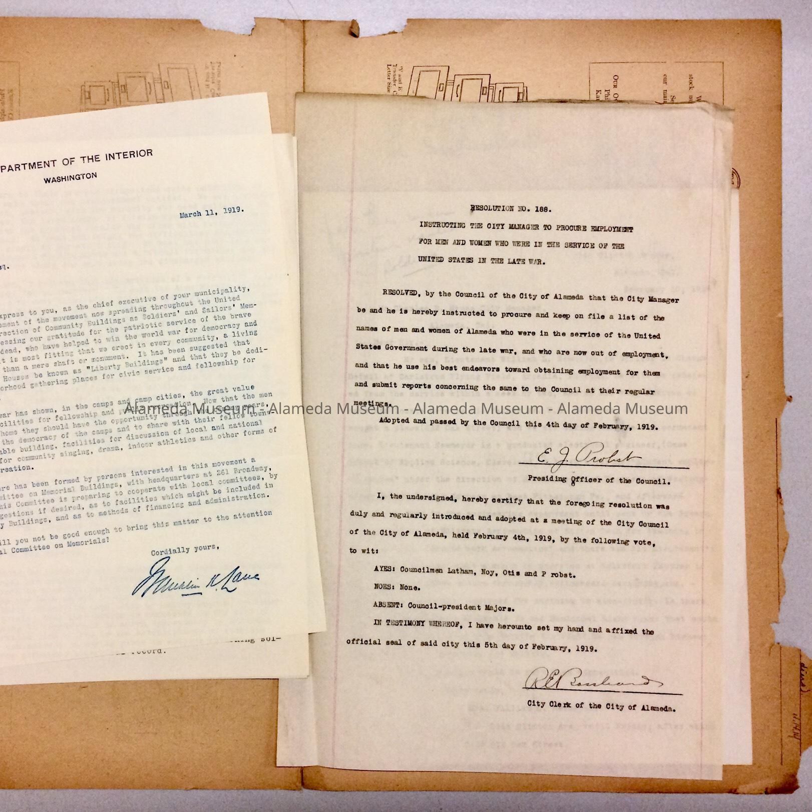 SUBJECT CATEGORY: CITY OF ALAMEDA, WW-I