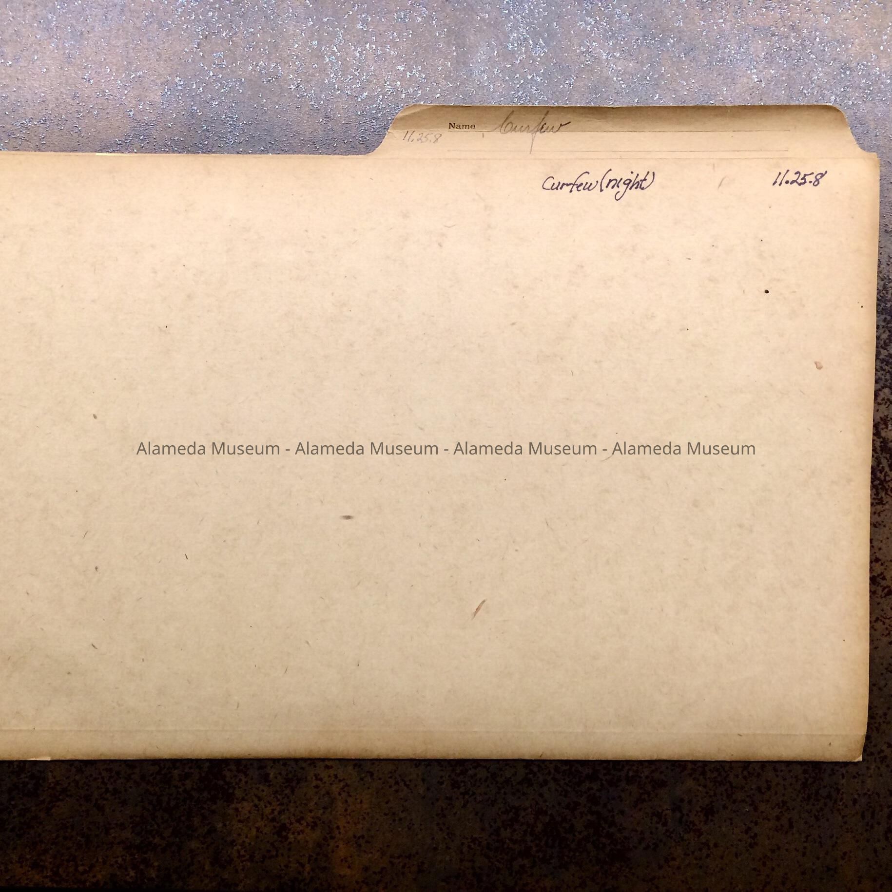 HISTORY OF OBJECT: A LEGAL-SIZE FILE FOLDER CONTAINING CORRESPONDENCE AND REPLIES CONCERNING NIGHTLY CURFEWS AND BELLS.
