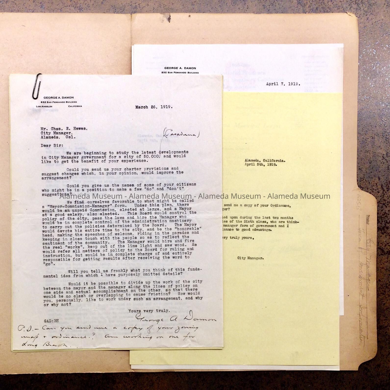 Folder with correspondence regarding the City Manager, 1919Entry/Object ID