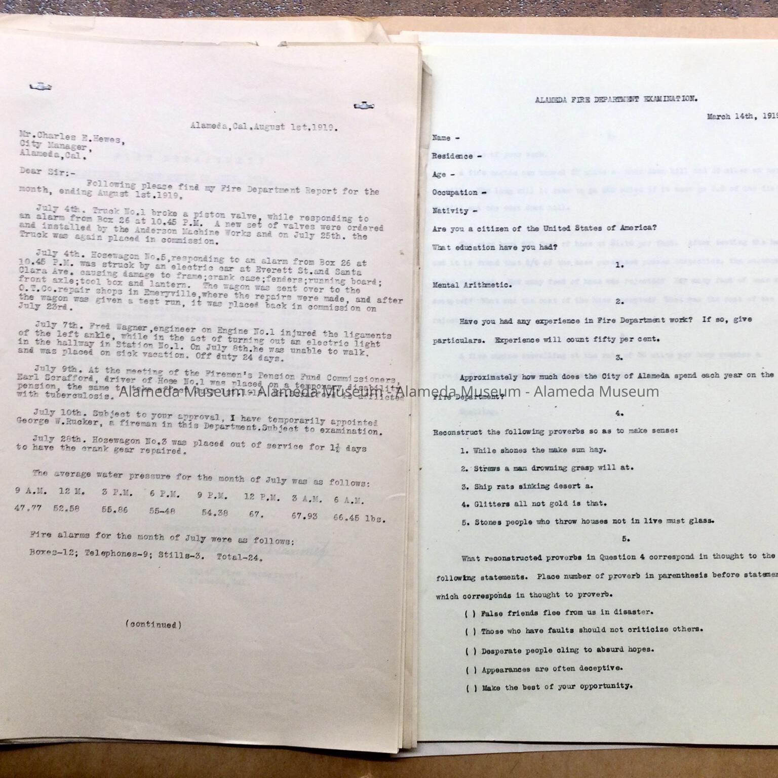 A FILE FOLDER CONTAINING INFORMATION CONCERNING ALAMEDA FIRE DEPARTMENT PERSONNEL.