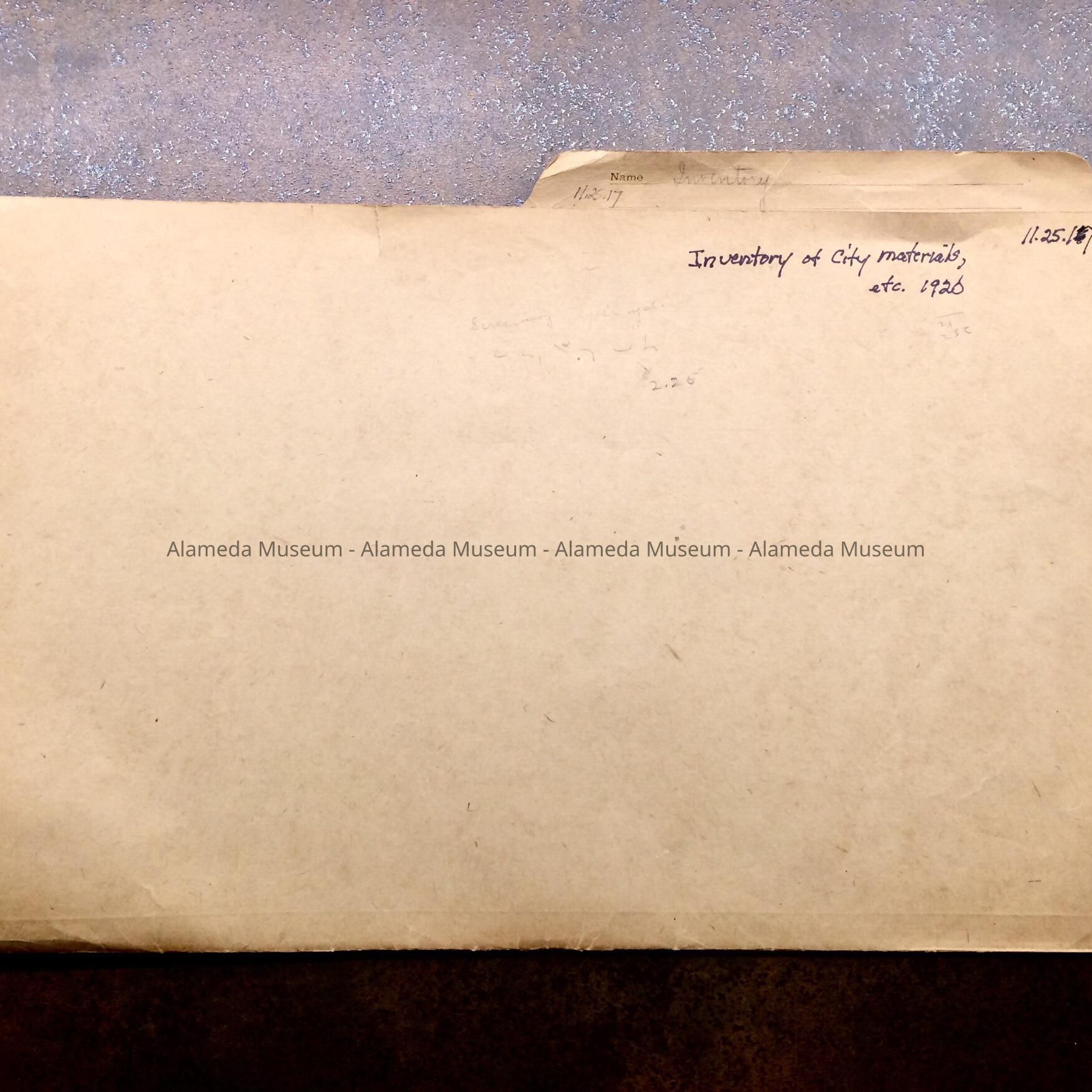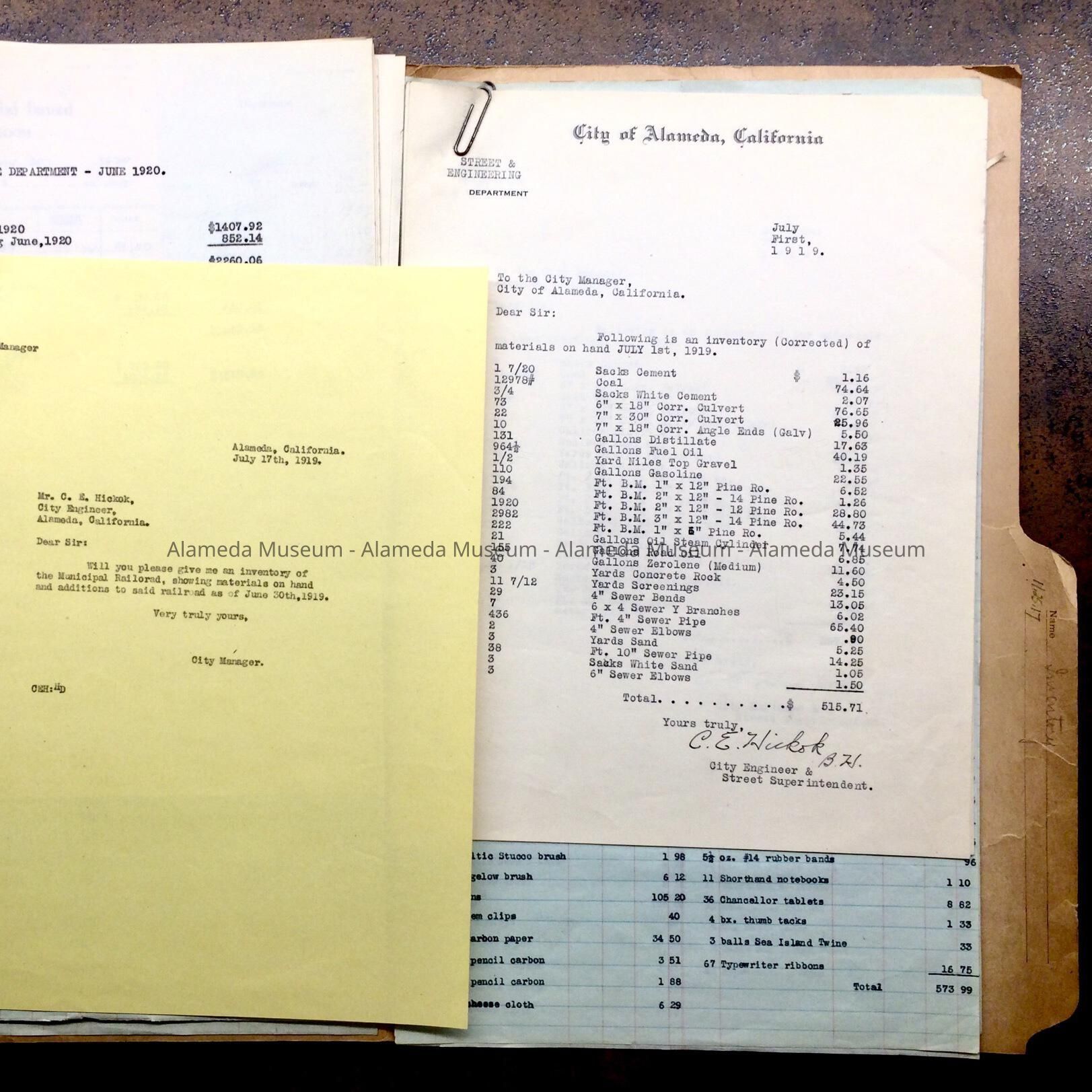 HISTORY OF OBJECT: A FILE FOLDER CONTAINING AN INVENTORY OF OFFICE SUPPLIES FOR THE CITY OF ALAMEDA.