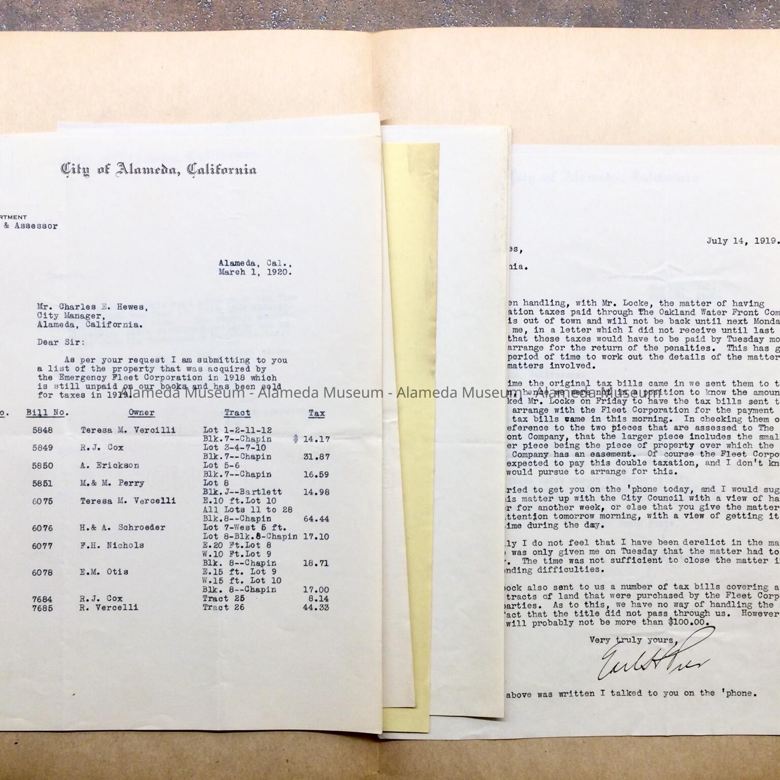 A FILE FOLDER CONTAINING CORRESPONDENCE, ETC. CONCERNING PROPERTY THAT WAS ACQUIRED BY THE EMERGENCY FLEET CORP. IN 1918, POSSIBLY FOR WW-I USES.
