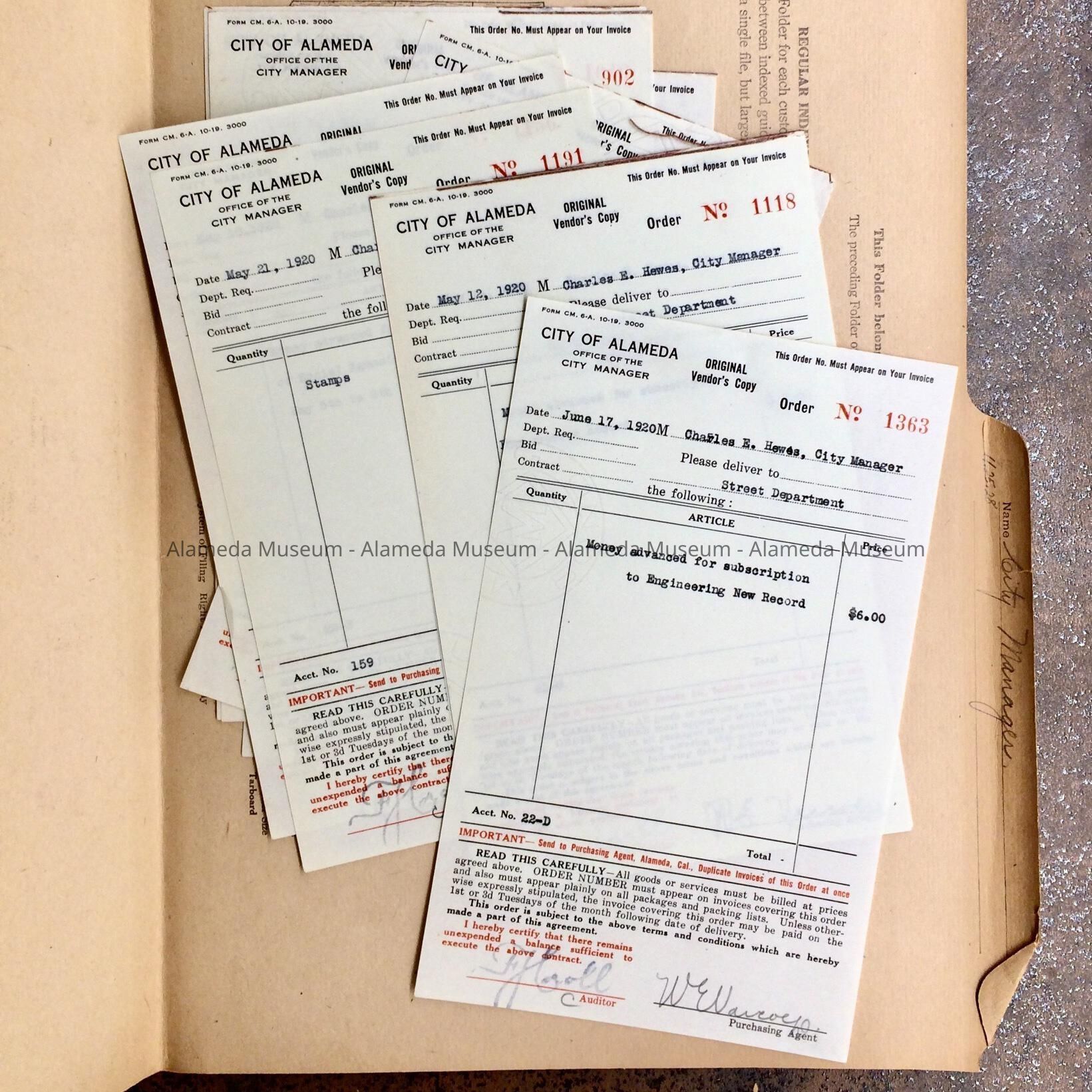 Folder with receipts for vendor purchases, 1920Entry/Object ID
