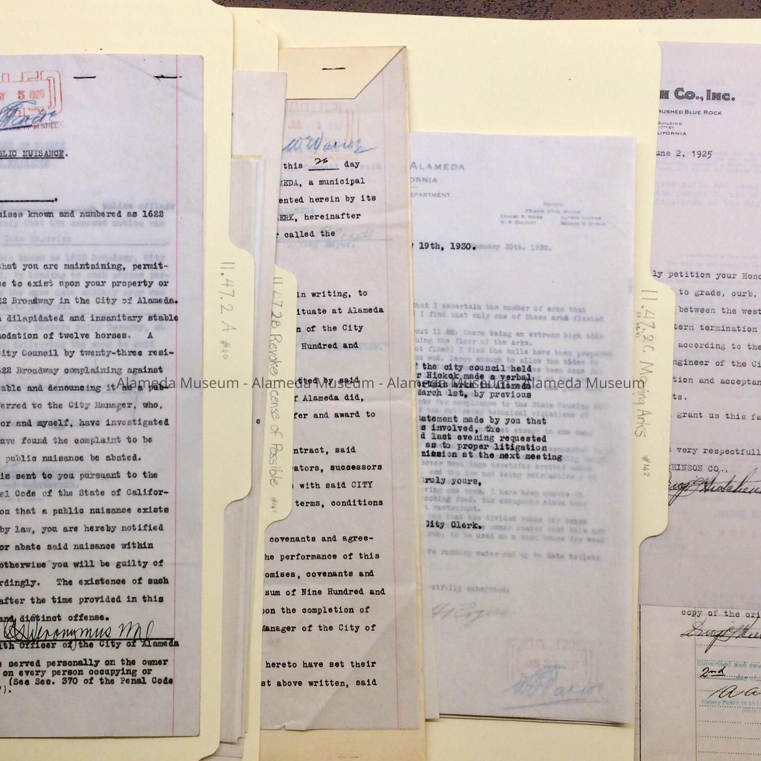 Includes approved move of ark Brynhilda, owned by Johan Johansen, to 2611 Eagle Ave (address no longer exists). 1925-1930