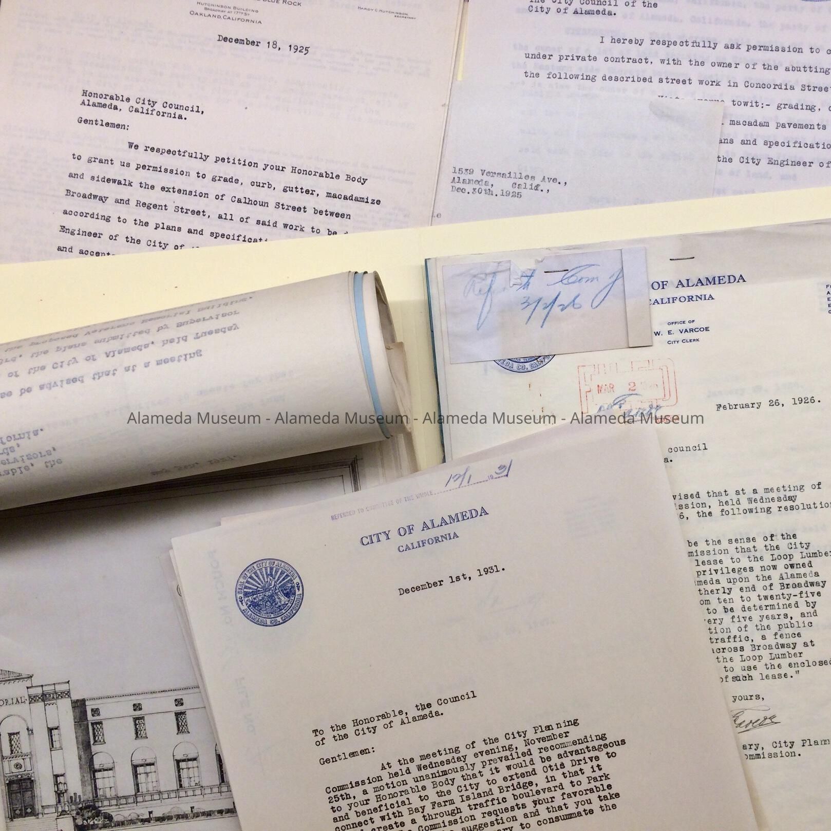 A: #155: connecting Park Street to the Bay Farm Island Bridge & closing north end of Broadway on behalf of Loop Lumber Co (1925-1931)'