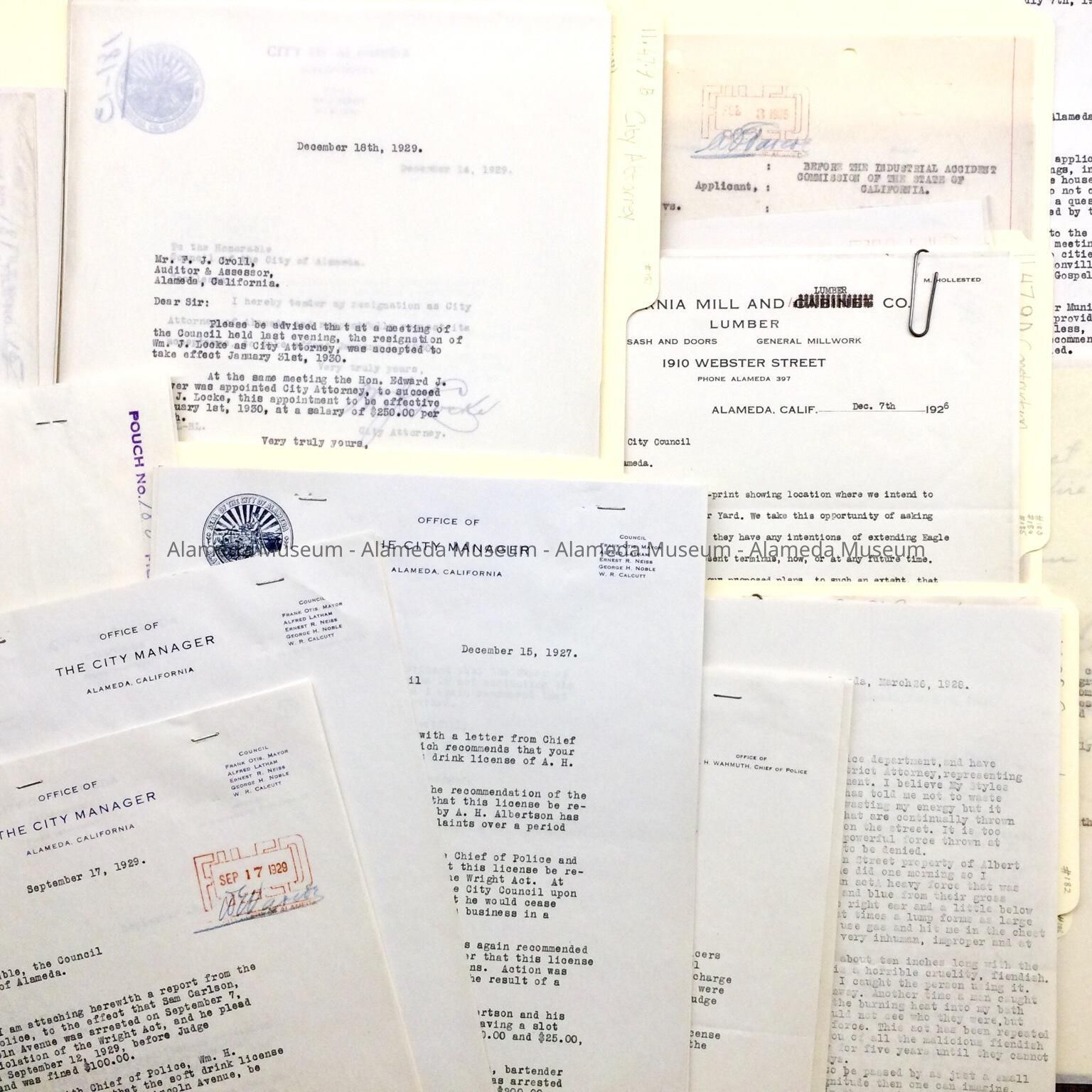 B. #181, 1926-1932: activities of the City Attorney, Wm. J. Locke until January 1, 1930, and Edward J. Silver thereafter.