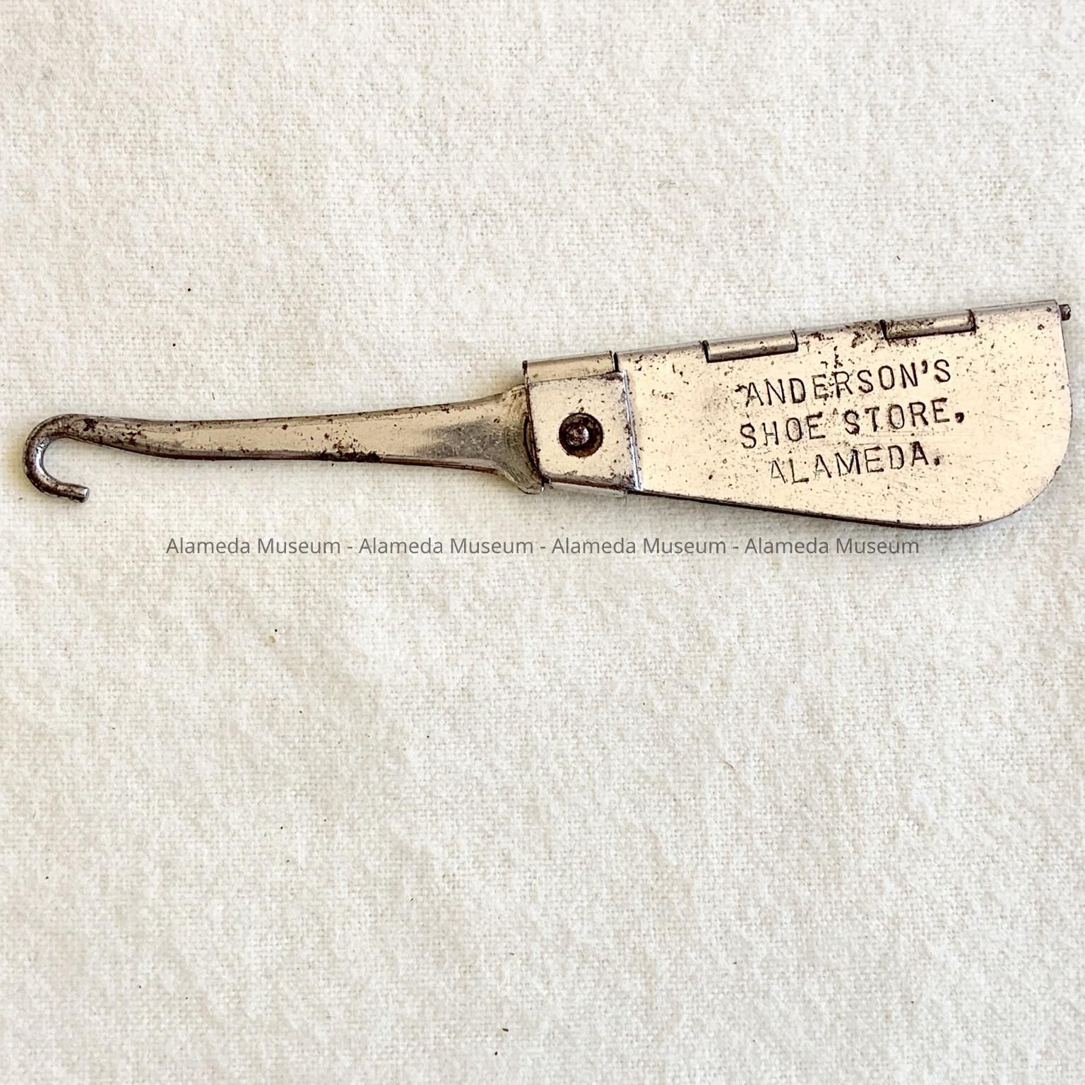 A FOLDING BUTTON HOOK ADVERTISING ANDERSON'S SHOE STORE, ALAMEDA, CALIFORNIA.