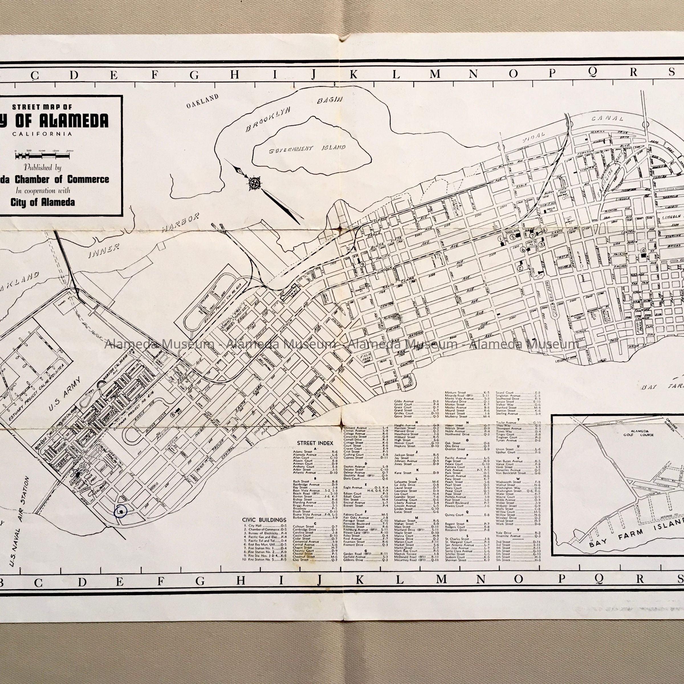 Folding street map of 'Alameda', issued by the Chamber of Commerce, c. 1950sEntry/Object ID