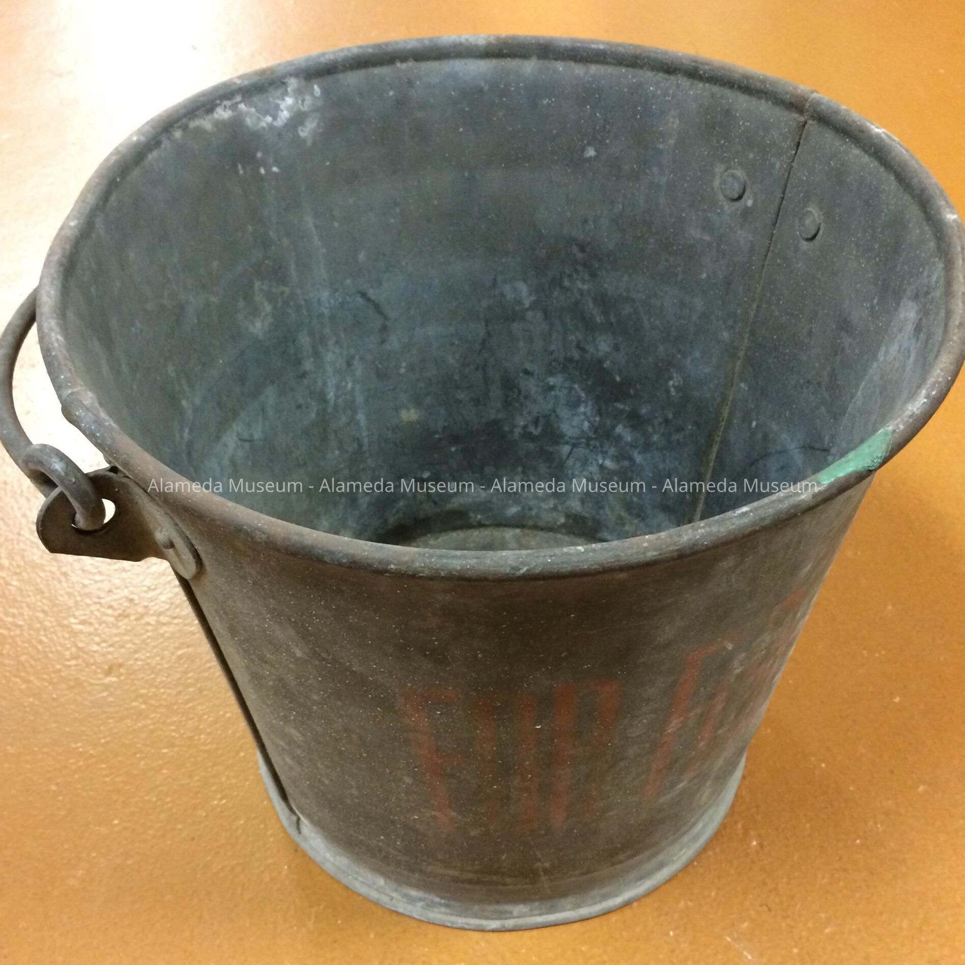 Galvanized iron bucket used by the Wm. Cox family of Santa Clara Ave., and found in the basement of their home.