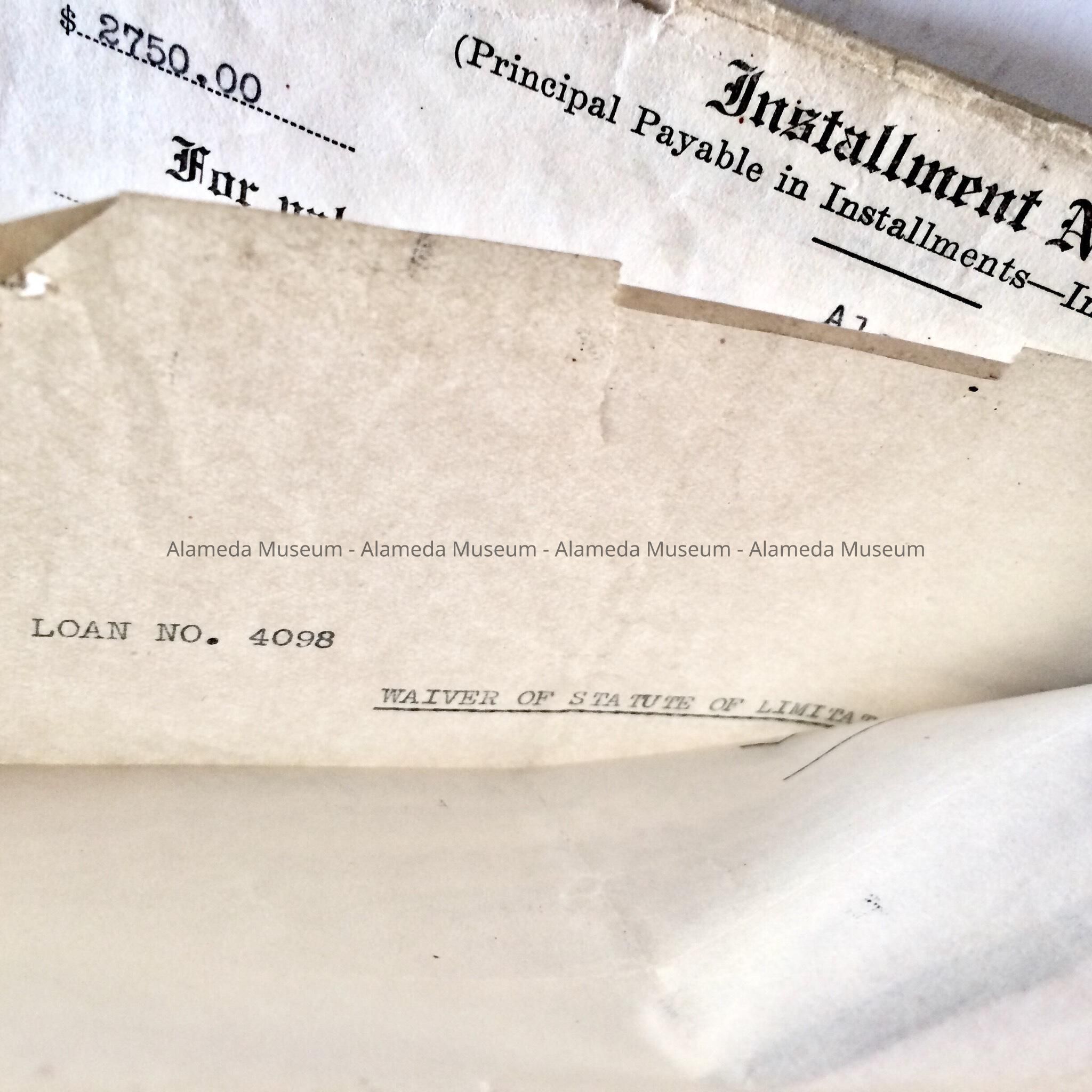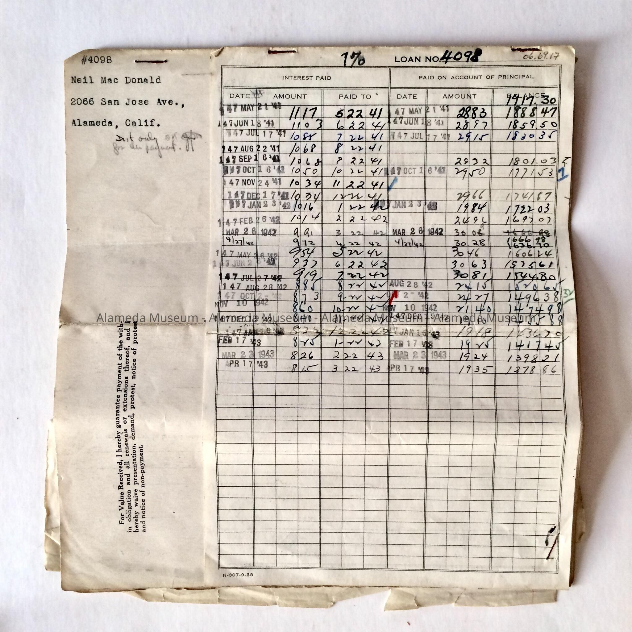 Form for Payment of loan on 2066 San Jose Avenue, c. 1940sEntry/Object ID