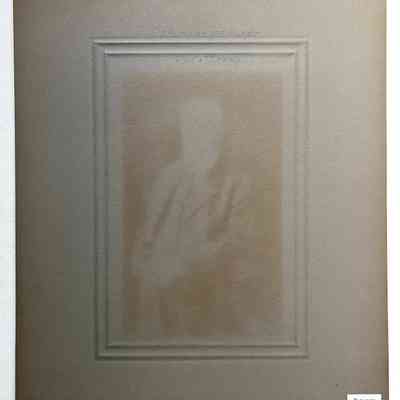 Description: Black and white photograph on white-colored mounting on which is imprinted with the photographer's name, Bushnell. The original studio tissue, also signed, covers the image.
