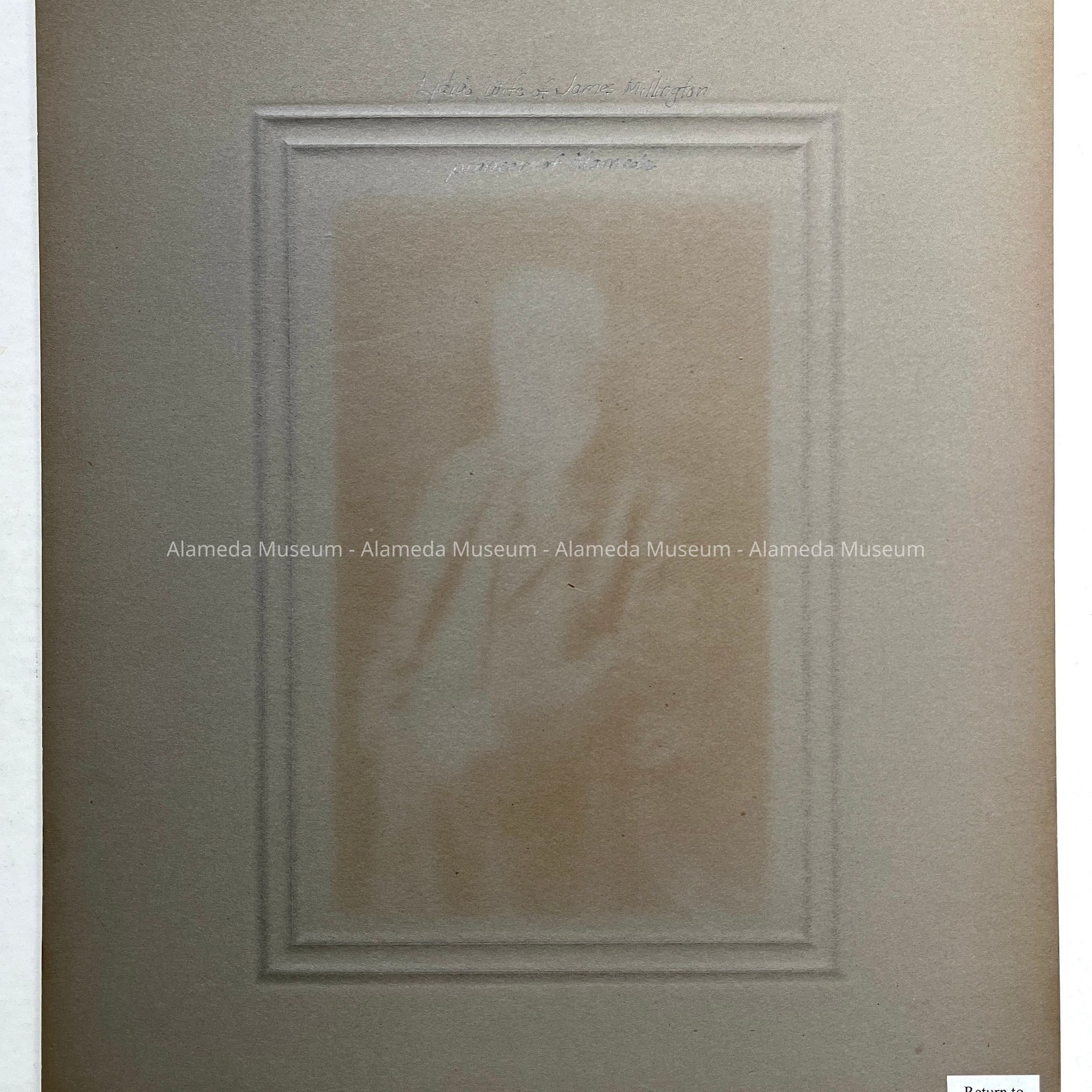 History of Object: Formal portrait of Lydia Millington, wife of James Millington.