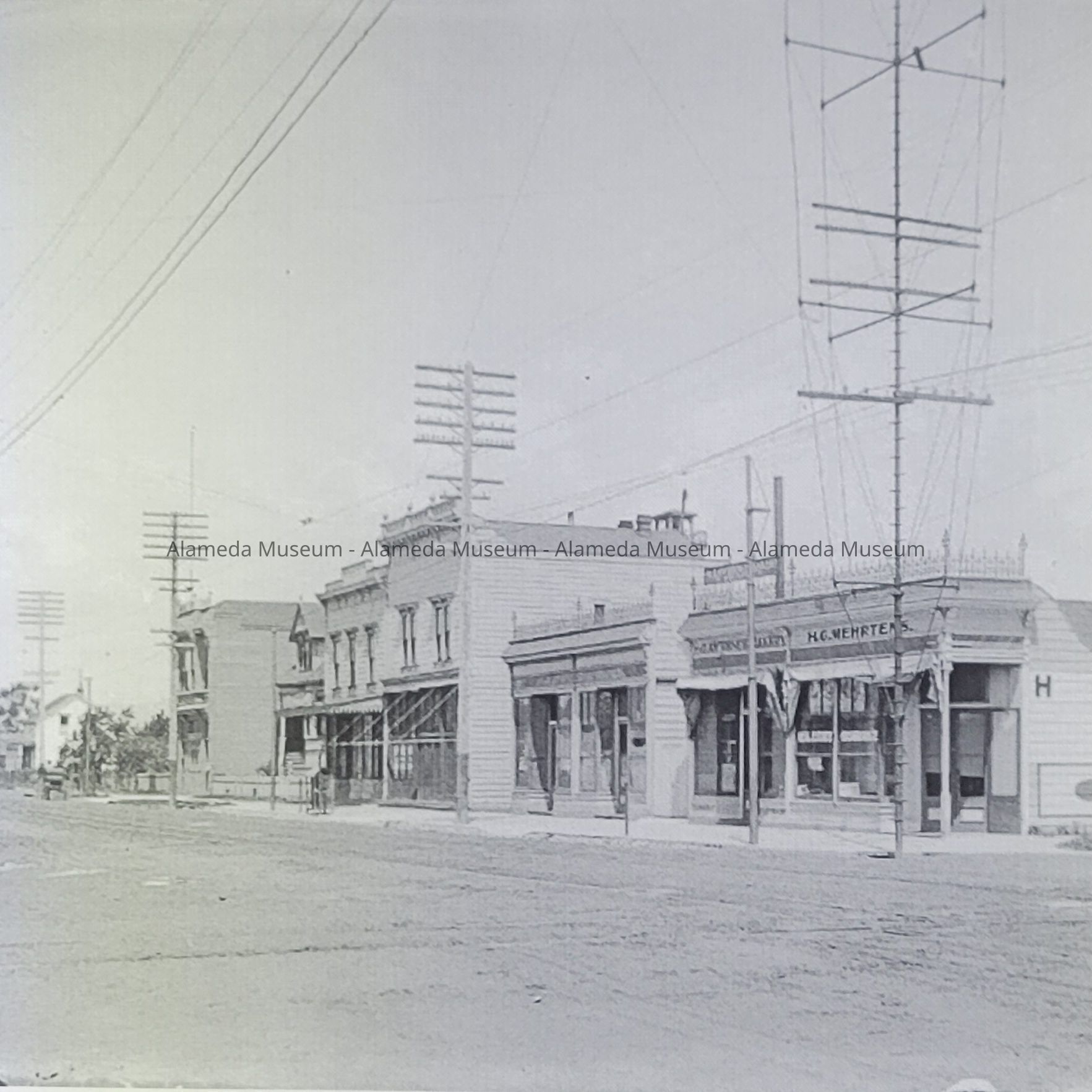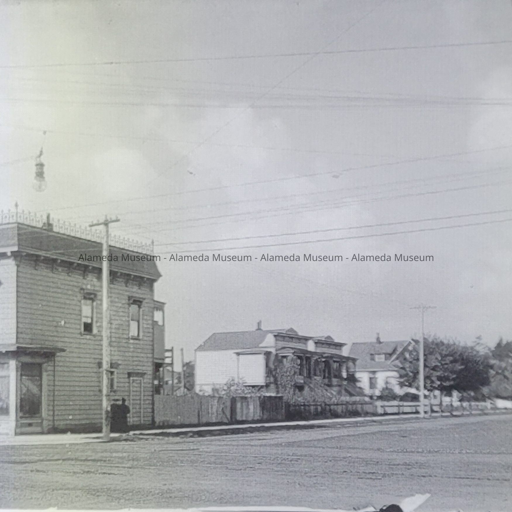 All of these negatives offer a 100+ year glimpse into the past, showing businesses and homes near the intersection Lincoln Ave. and Webster St. Additionally, images of light towers are very rare.