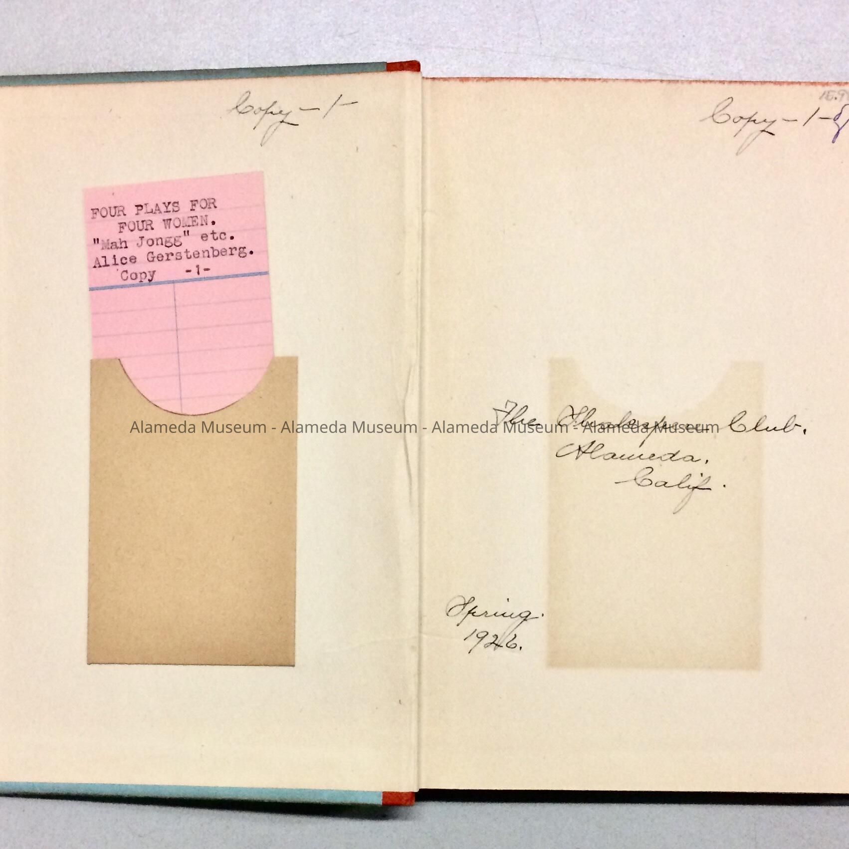 'Four plays for 4 women', by Alice Gerstenberg, 1924-1926Entry/Object ID
